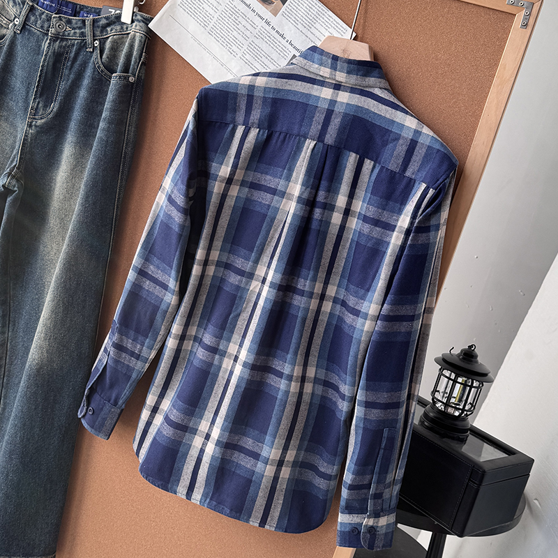 欧美外贸秋季男士百搭定织磨毛格纹长袖衬衫衬衣男潮S00611