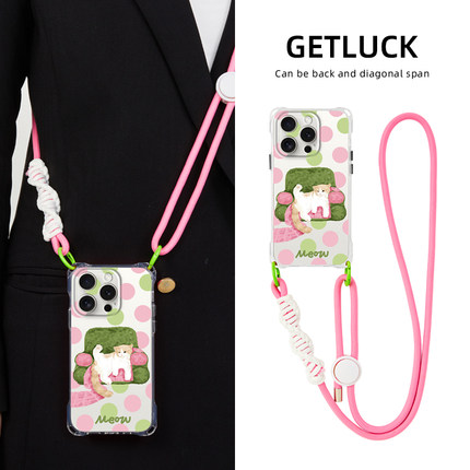 适用苹果17Promax新款手机壳背带斜挎iphone16plus手提透明软13卡通波点14猫咪12pro挂绳15ins日韩xs原创女