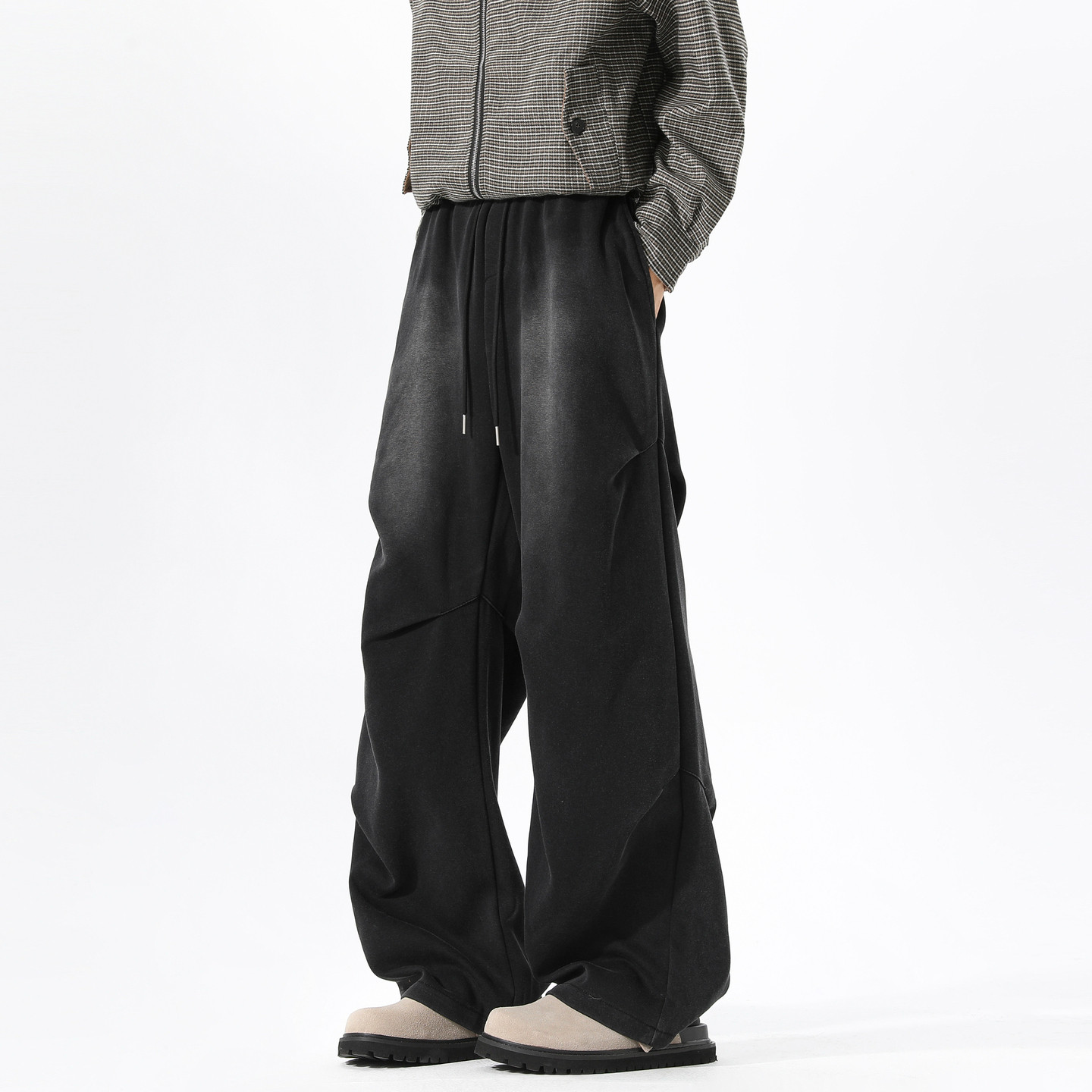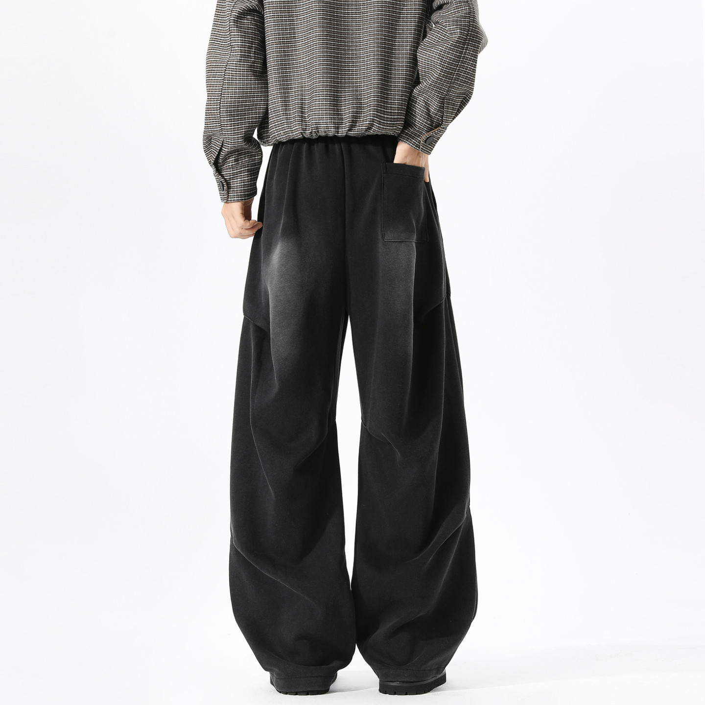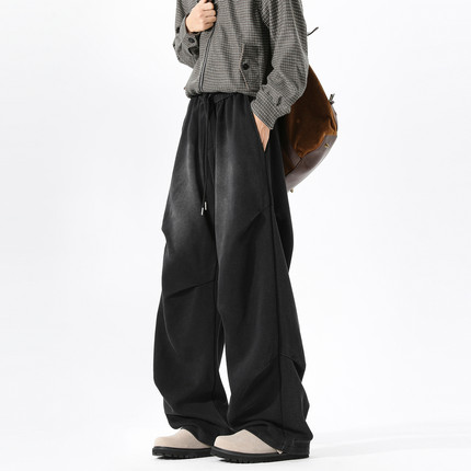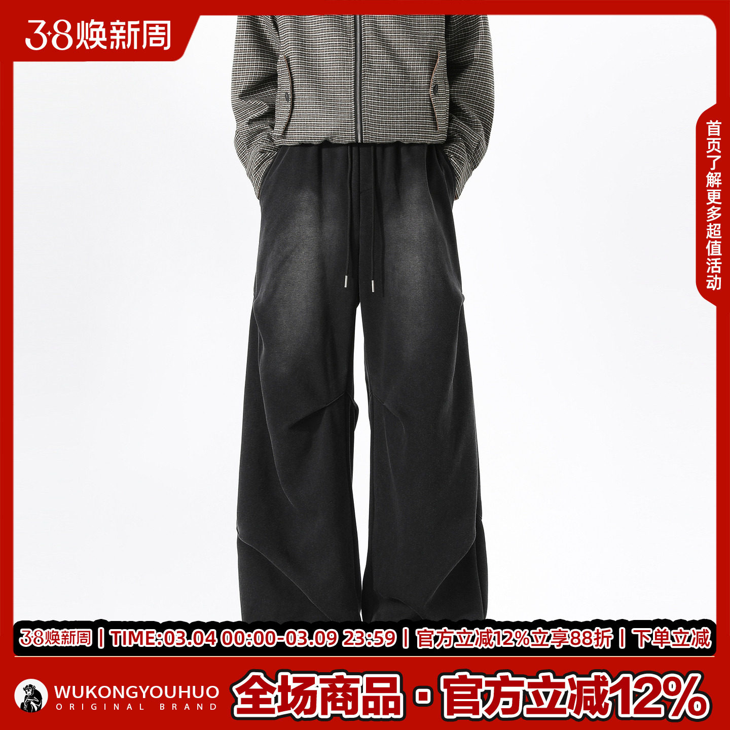 悟空有货美式复古褶皱水洗运动卫裤男女潮牌宽松阔腿百搭休闲长裤