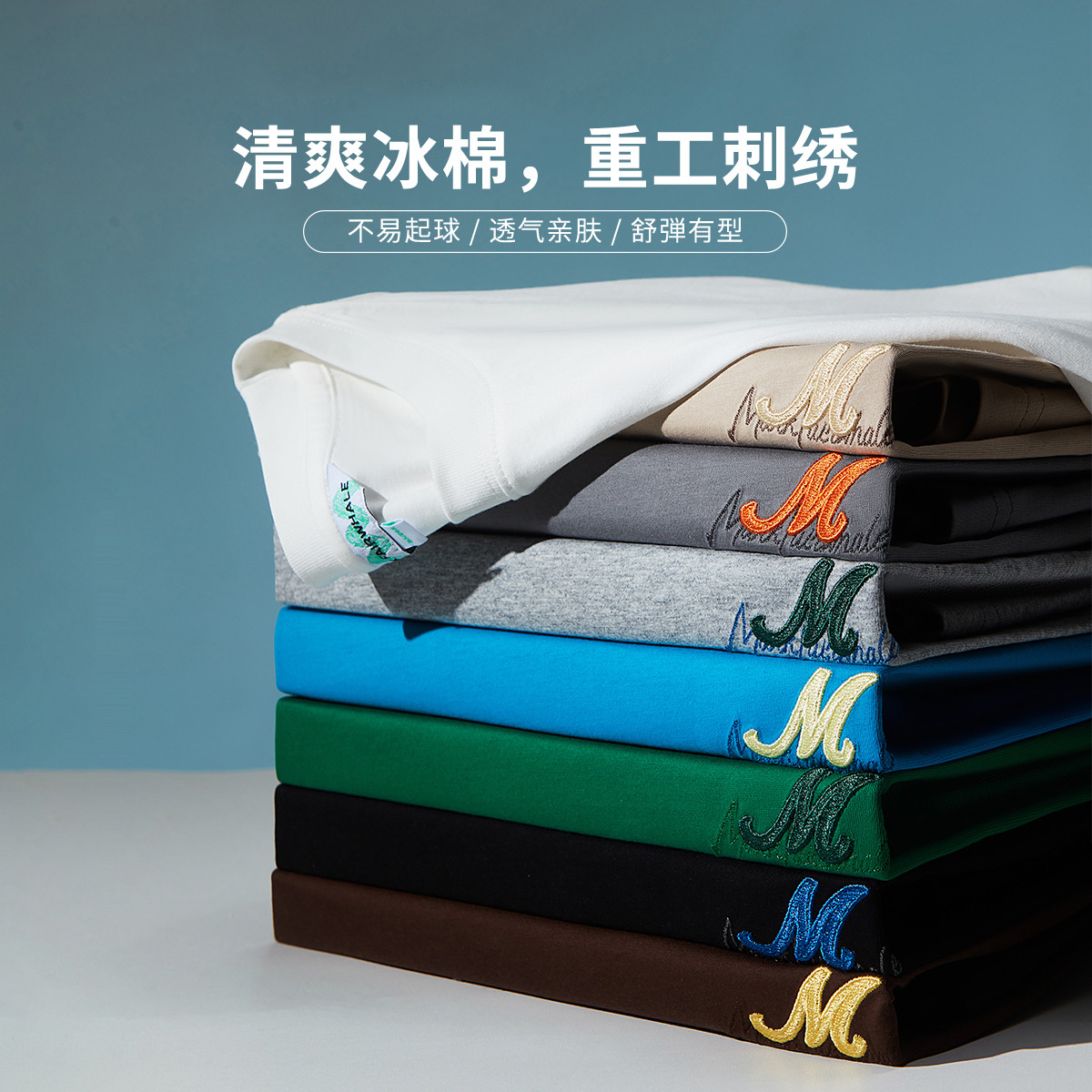 【100%纯棉 男女同款】马克华菲夏重工刺绣透气短袖休闲T恤男