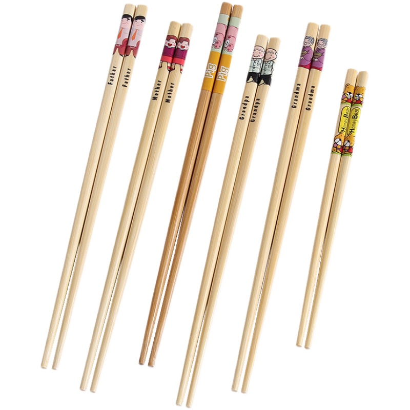 品竹本色全家福卡通筷子天竹日式分餐彩绘一家人纯高端竹质家庭筷