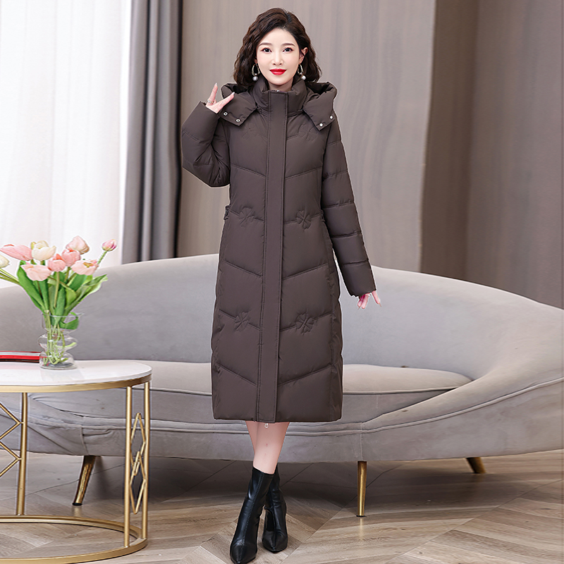 可拆卸帽修身收腰妈妈装棉衣棉服女今年冬新款中长款过膝棉袄外套