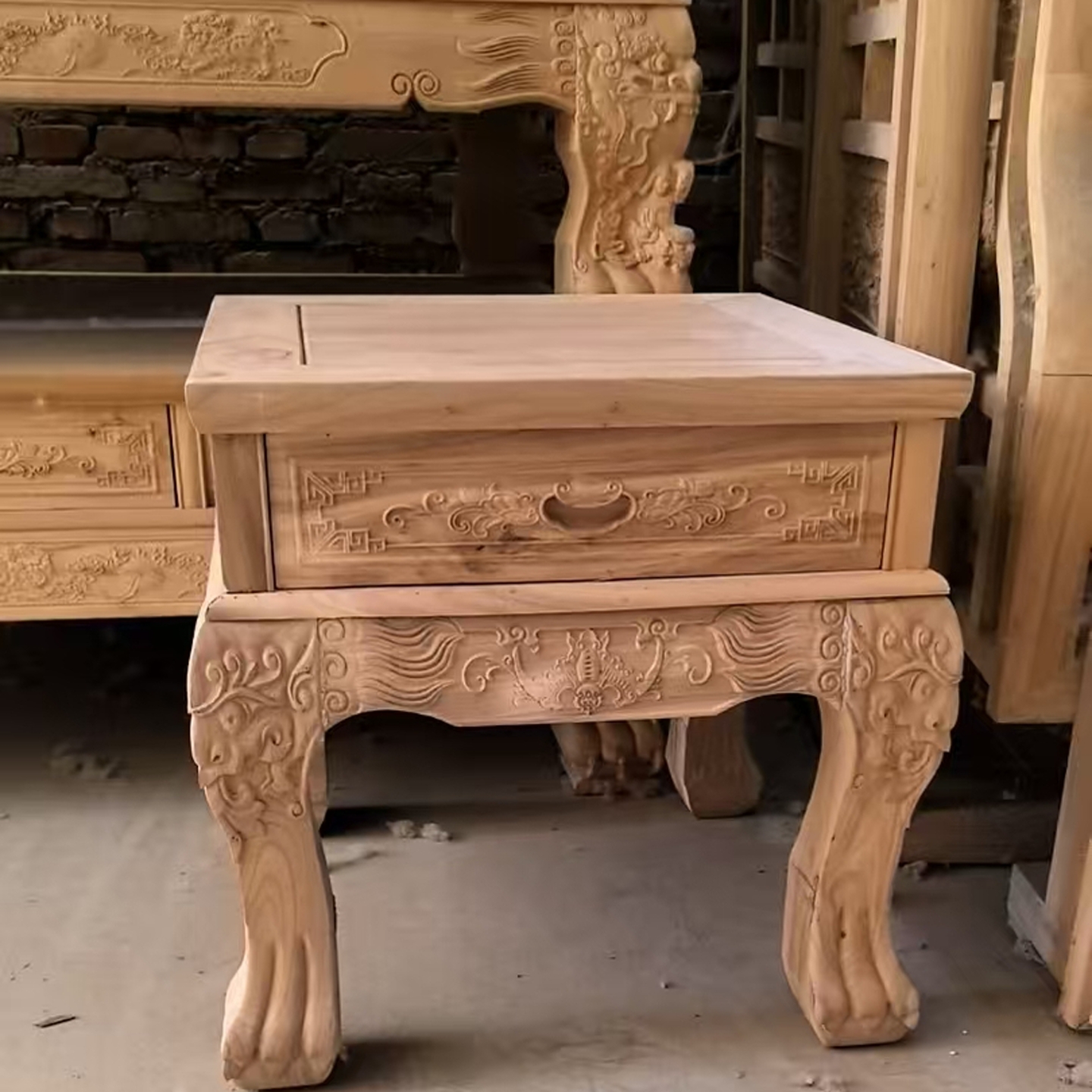 中式实木沙发六件套北方老榆木明清古典仿古雕花客厅组合家具白茬
