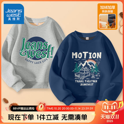 真维斯童装男童加绒卫衣秋冬款男孩休闲服儿童2025新款大童上衣男