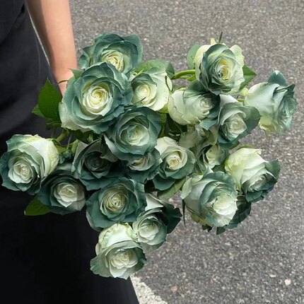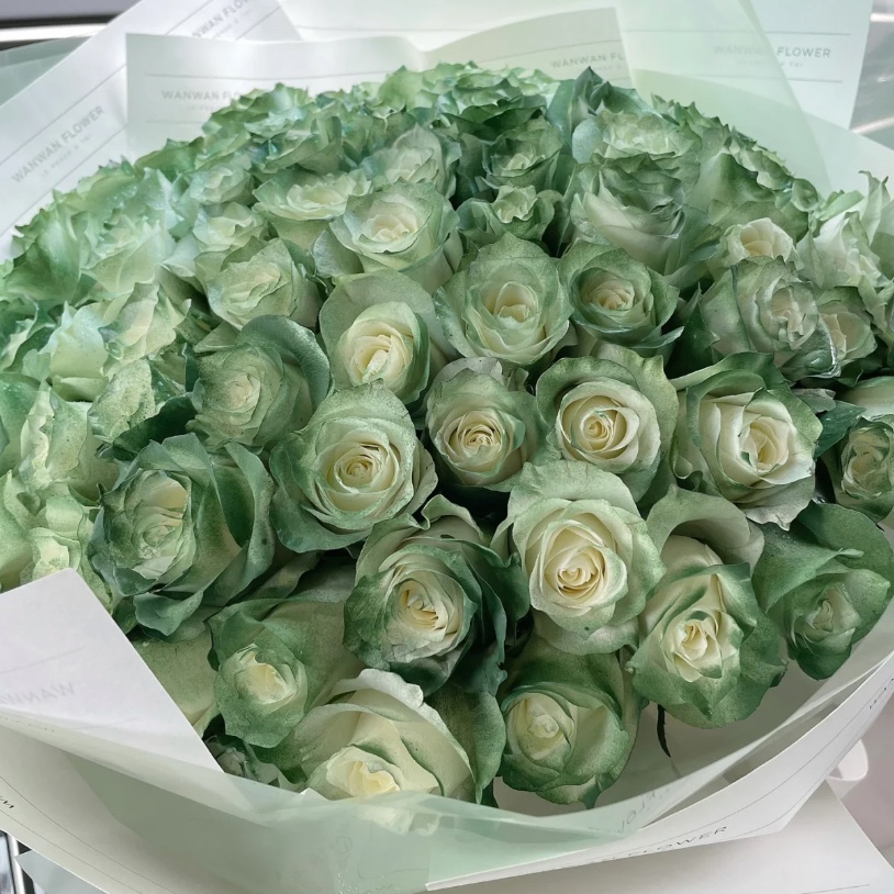 七夕玫瑰花束喷色玫瑰苏格兰绿鲜花云南基地直发手捧花真花鲜切花