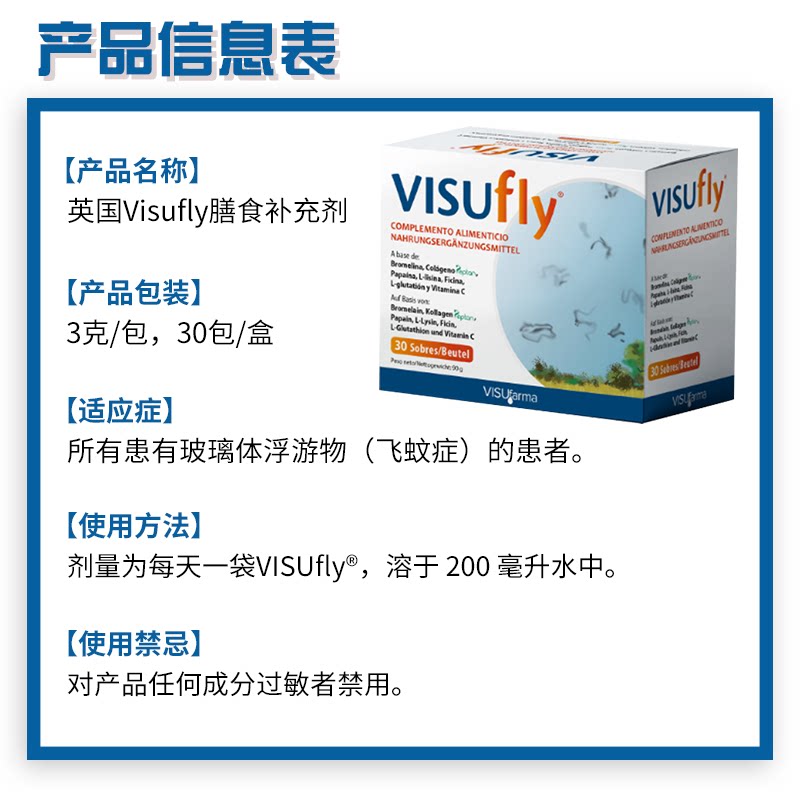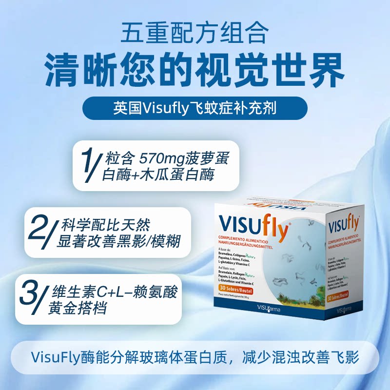 英国VisuFly飞蚊症玻璃体浑浊膳食补充剂治疗黑影富含菠萝蛋白酶