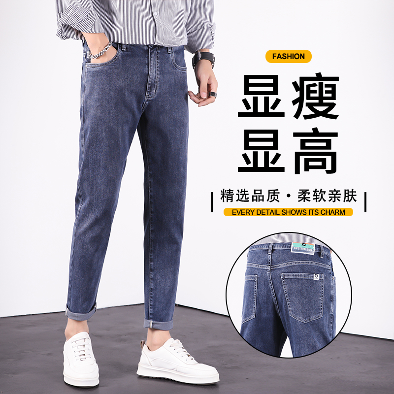 韩派2025秋季牛仔裤男士潮流九分高端百搭潮流显瘦修身小直筒裤子