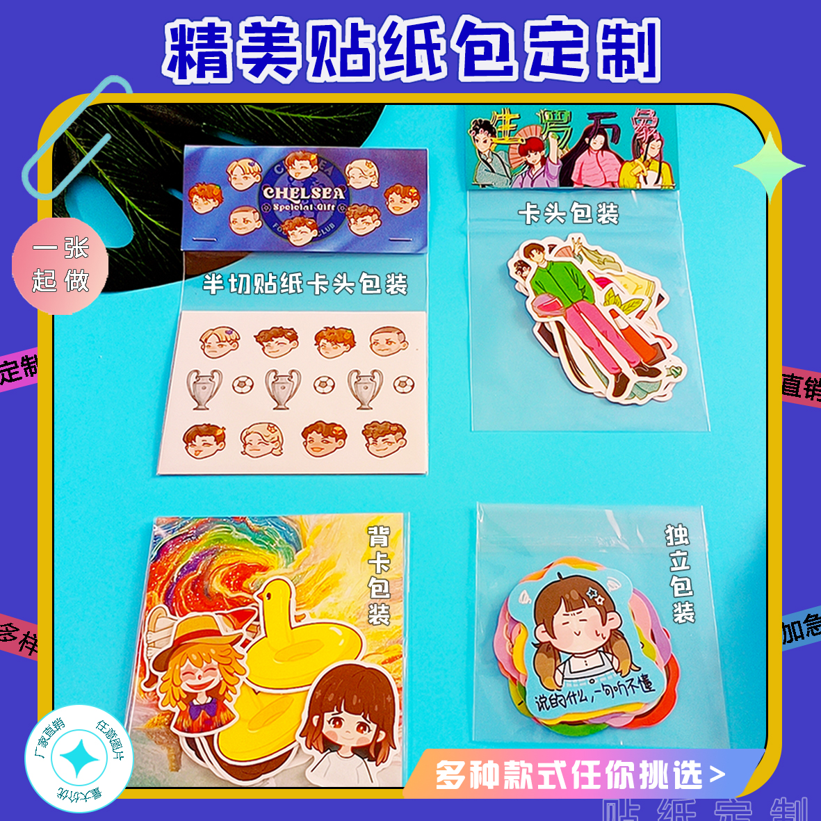 卡头贴纸定制背卡包装卡头动漫贴画打印明星异形订制动漫不干胶