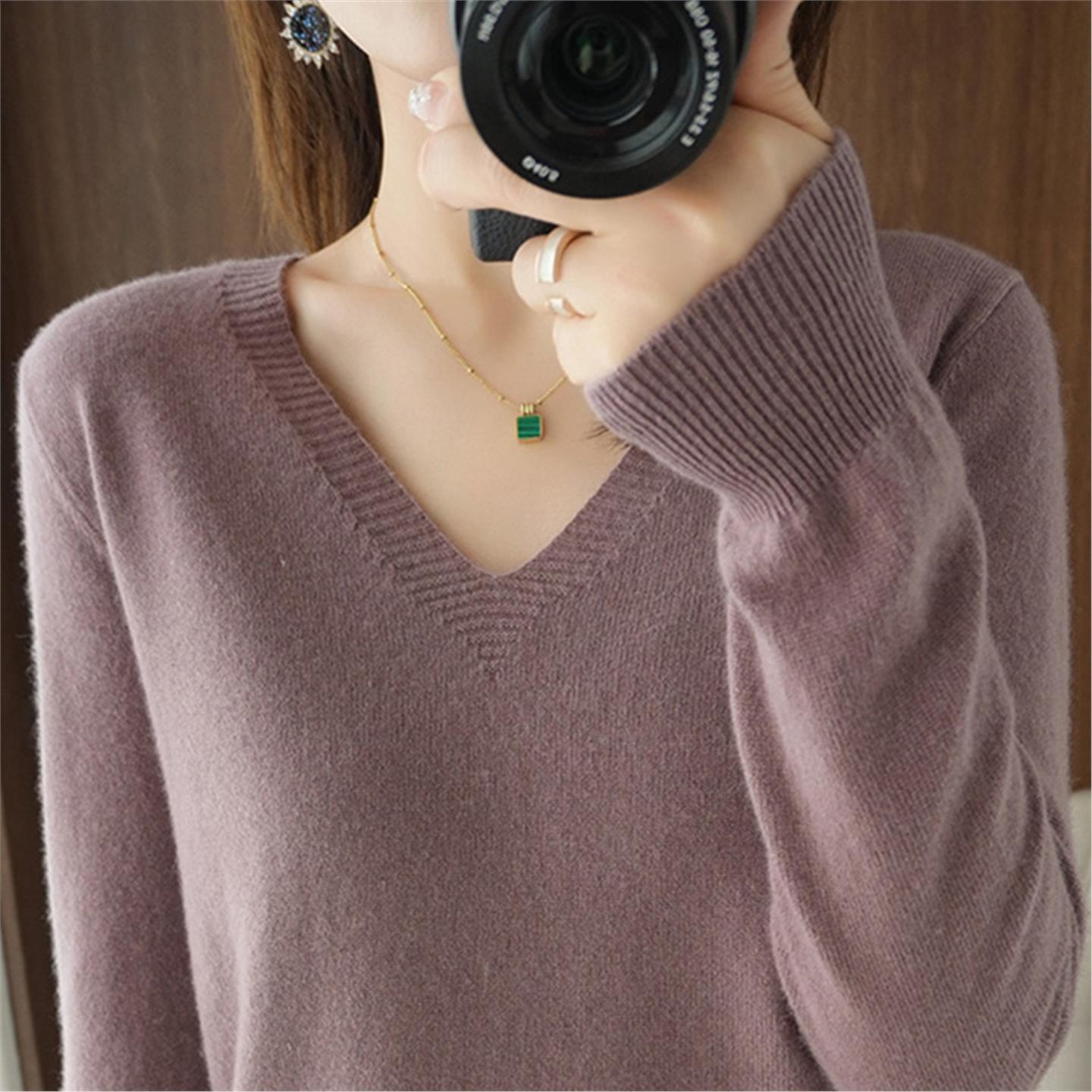 春秋冬新款毛衣女宽松V领内搭短款打底衫长袖薄款针织衫