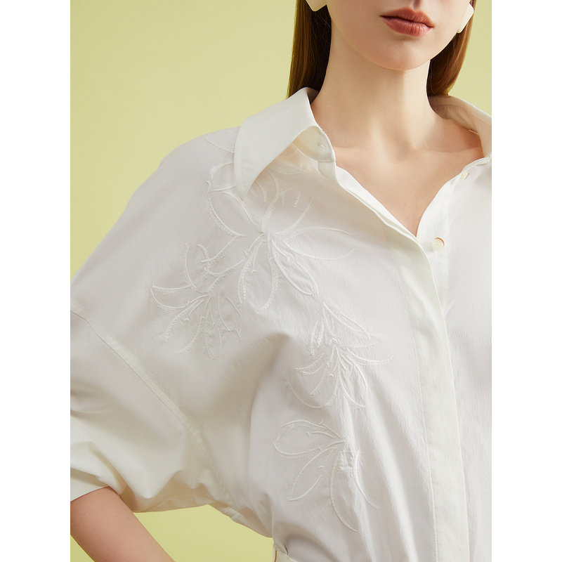 YINER音儿女装夏季立体蕙兰花刺绣衬衫松弛感蝙蝠袖上衣