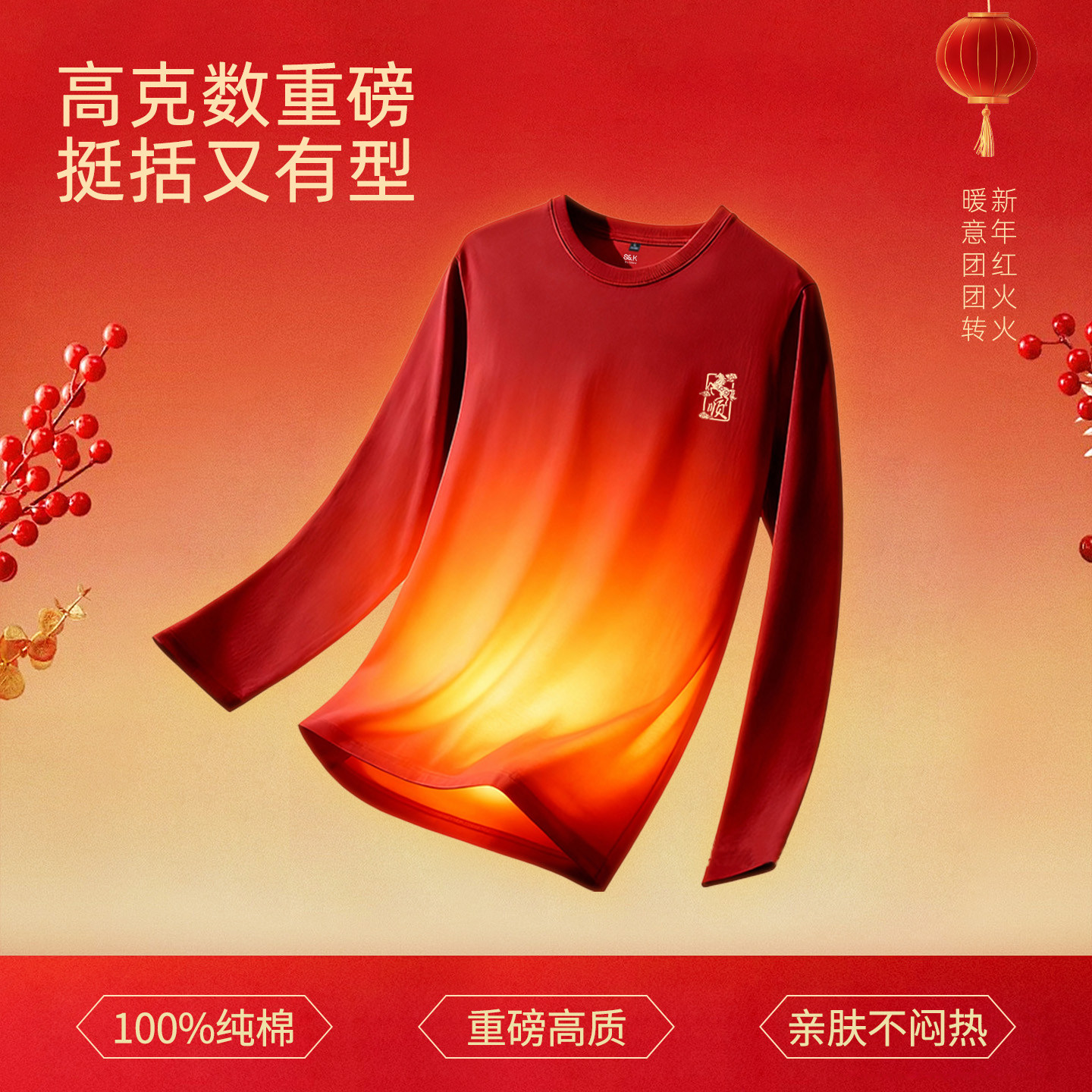 班尼路S&K本命年打底衫男款2026春季新款剪纸金马纯棉长袖t恤男A