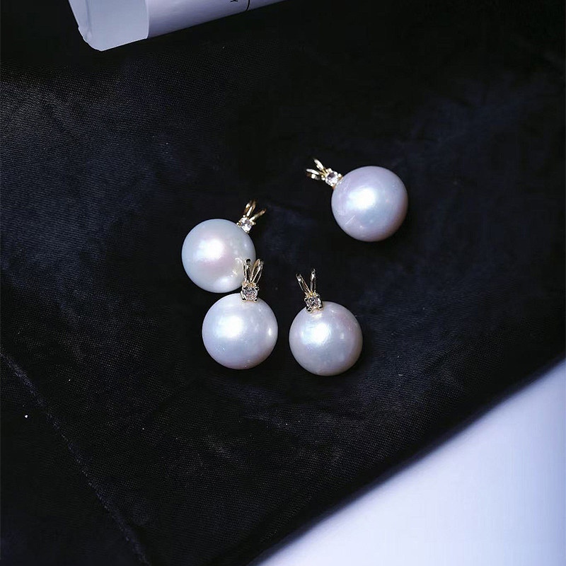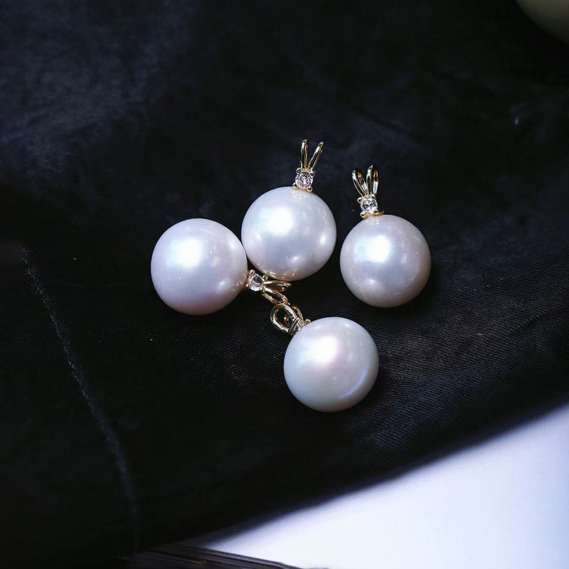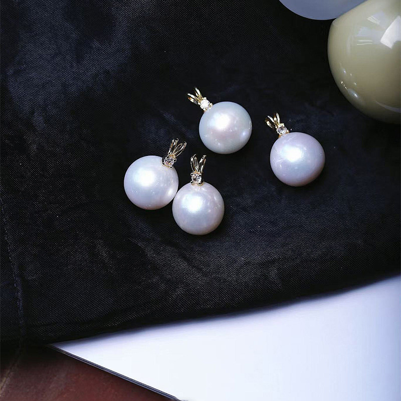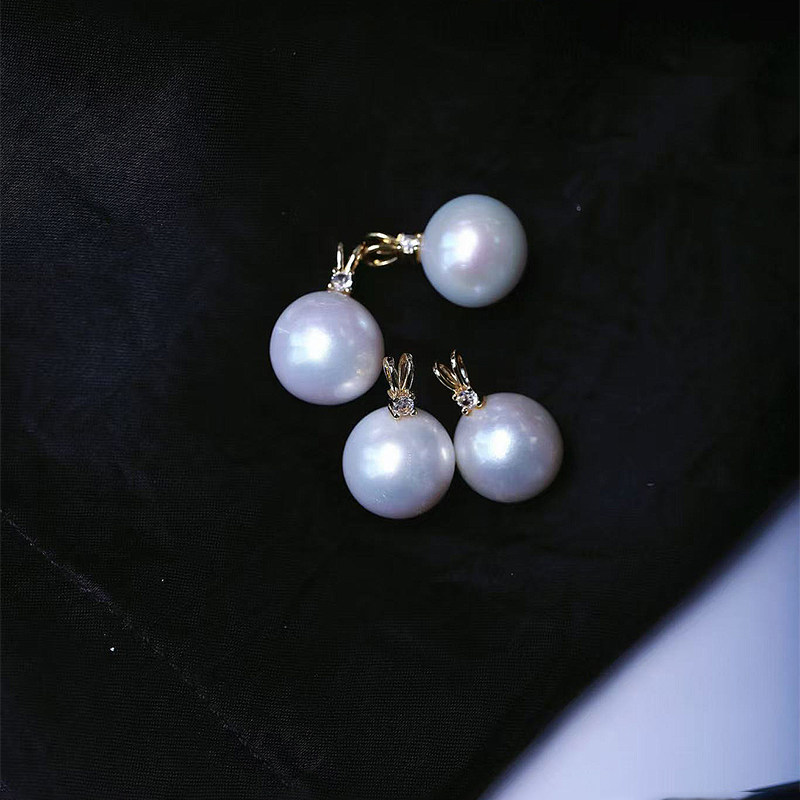 天然淡水白珍珠兔耳朵款扣头镶嵌款吊坠 女珍珠简约时尚锁骨饰品
