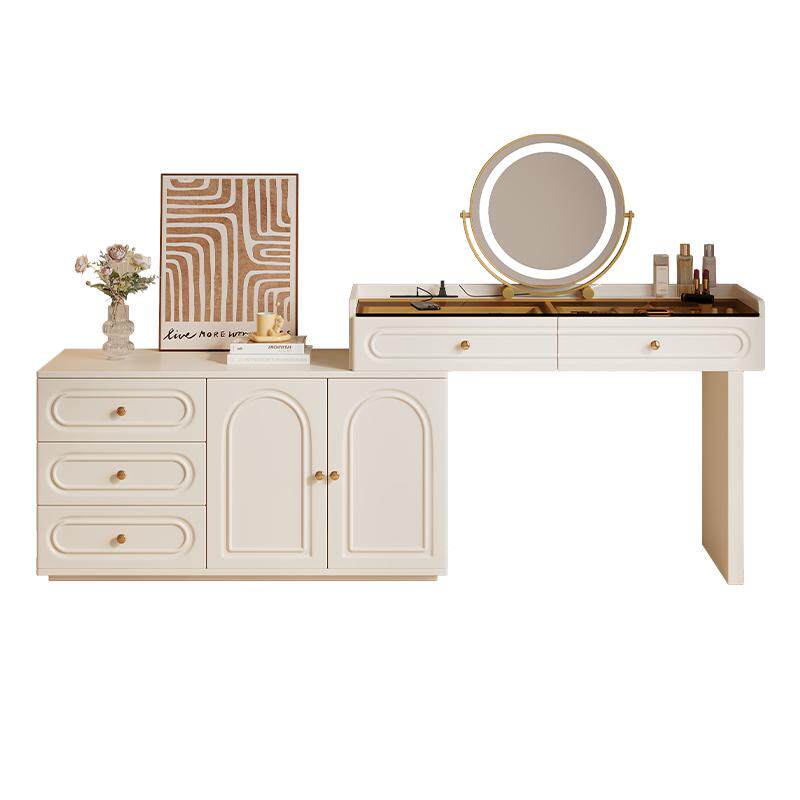 奶油风梳妆台斗柜一体现代卧室简约2026新款小户型实木转角化妆桌