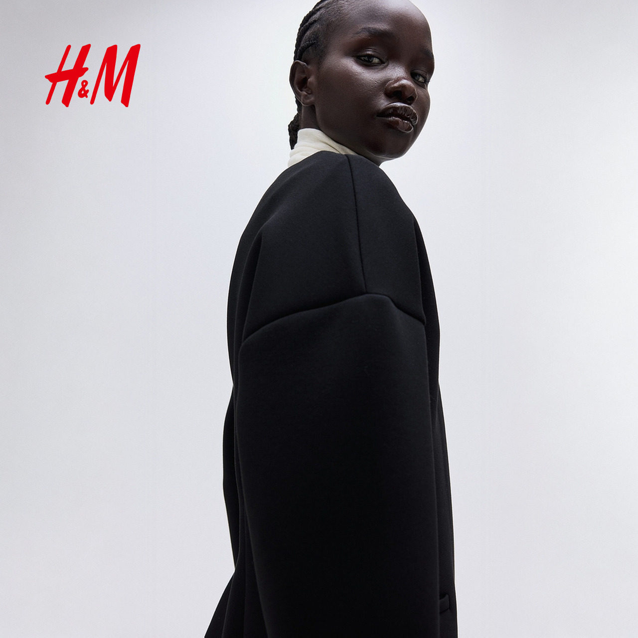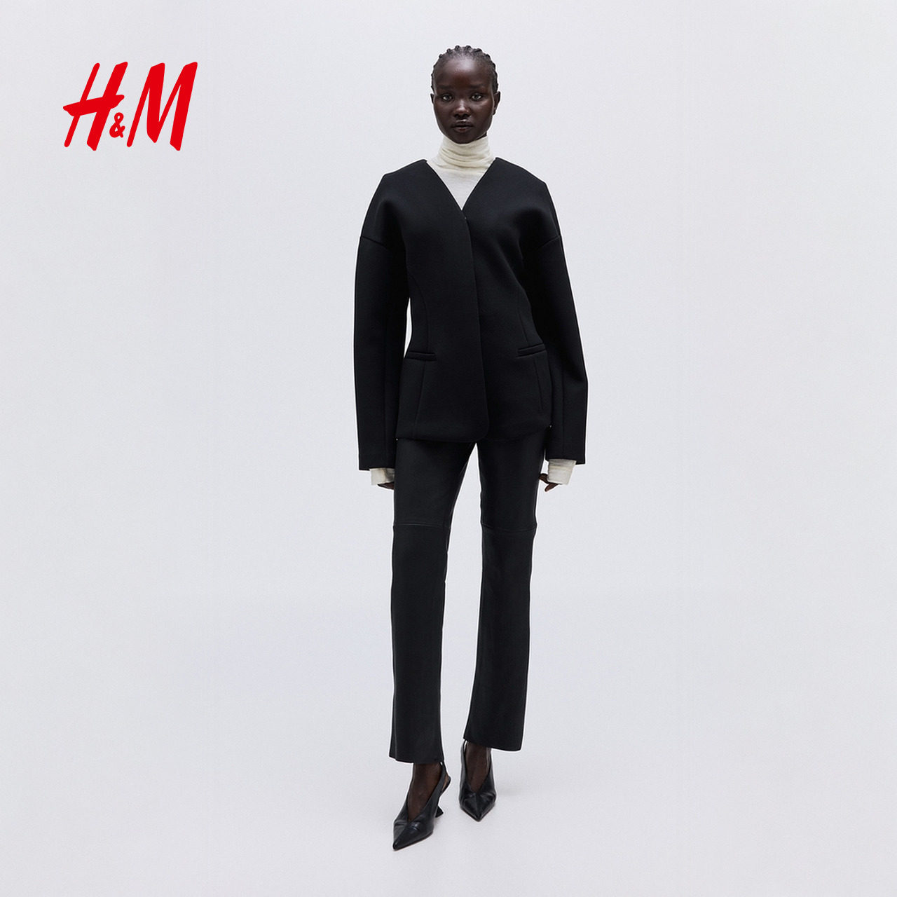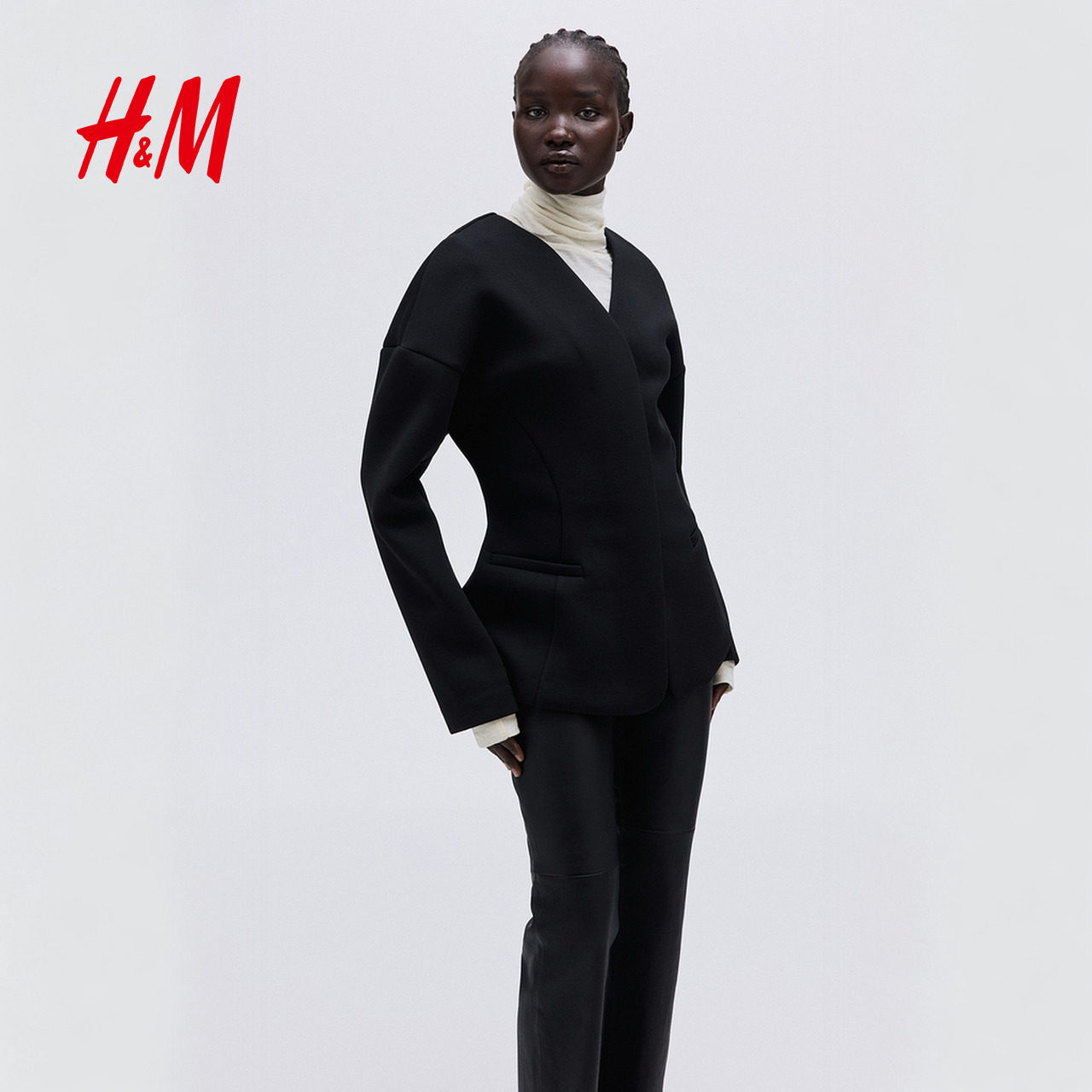 HM女装西装春季空气层面料无领v领单排扣外套1306759
