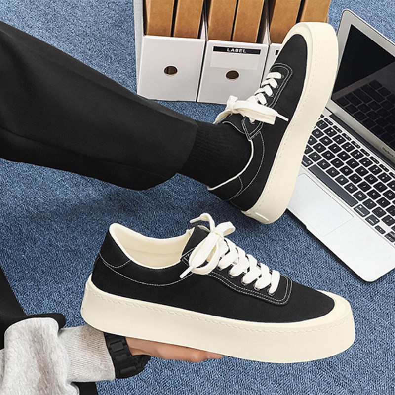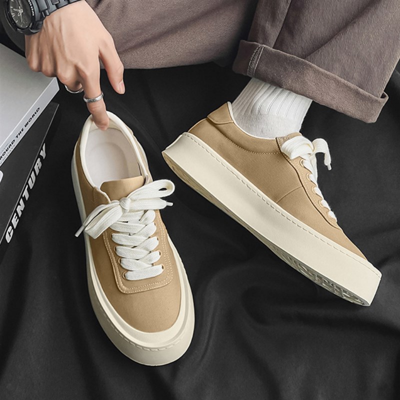 板鞋男鞋夏季透j气时尚简约青年百搭厚底小众高级感帆布休闲鞋男