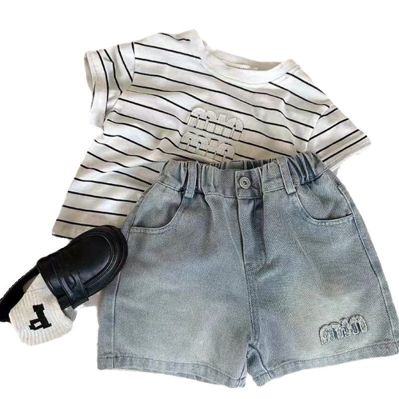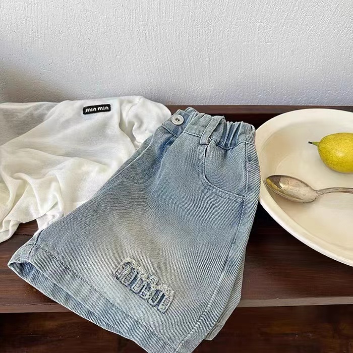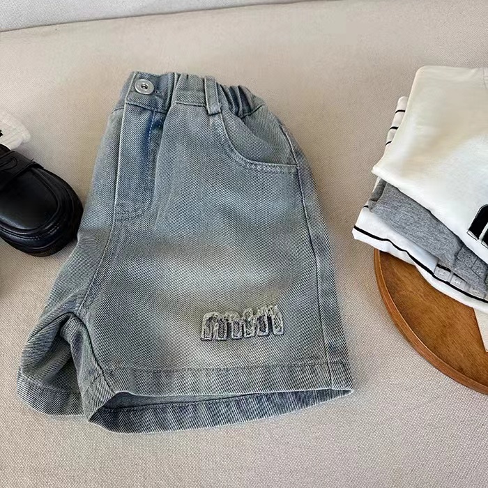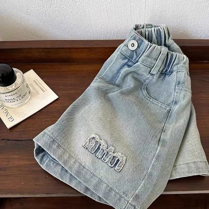 儿童牛仔短裤男童韩版休闲裤中小童夏季新款立体字母五分裤女洋气
