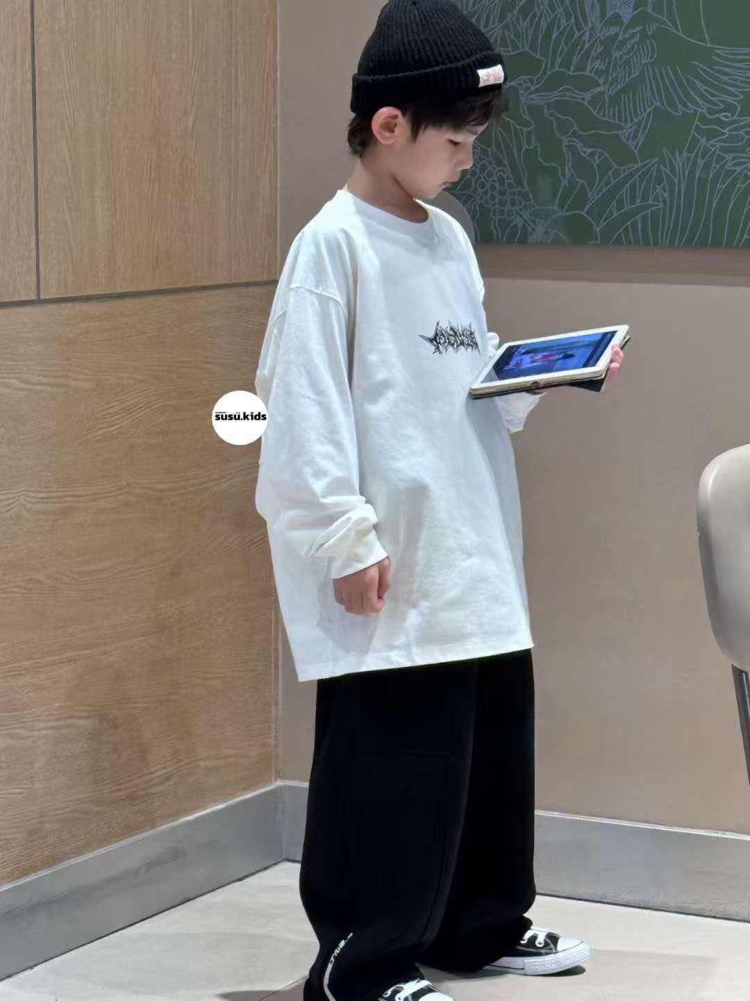 现货波拉童装秋装男童女童中大童青少年亲子街舞潮牌字母长袖T恤