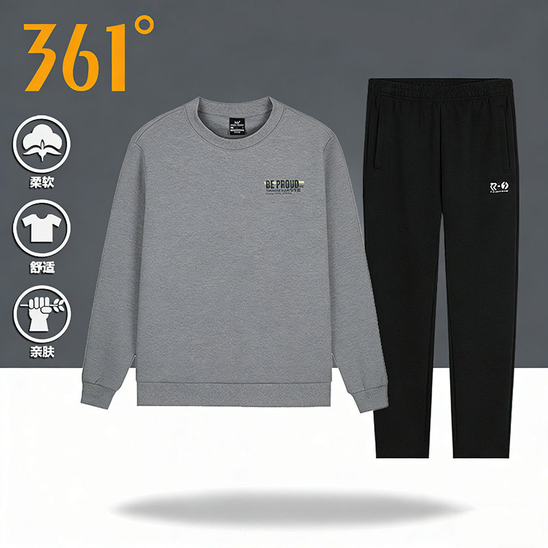 361度运动服套装男士春秋季2026新款圆领卫衣直筒卫裤休闲服男款