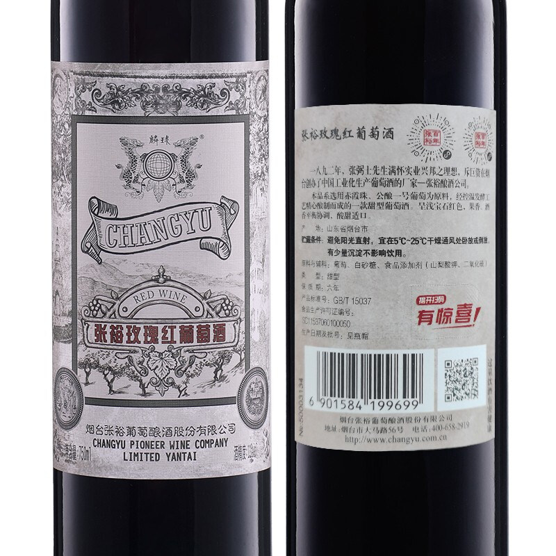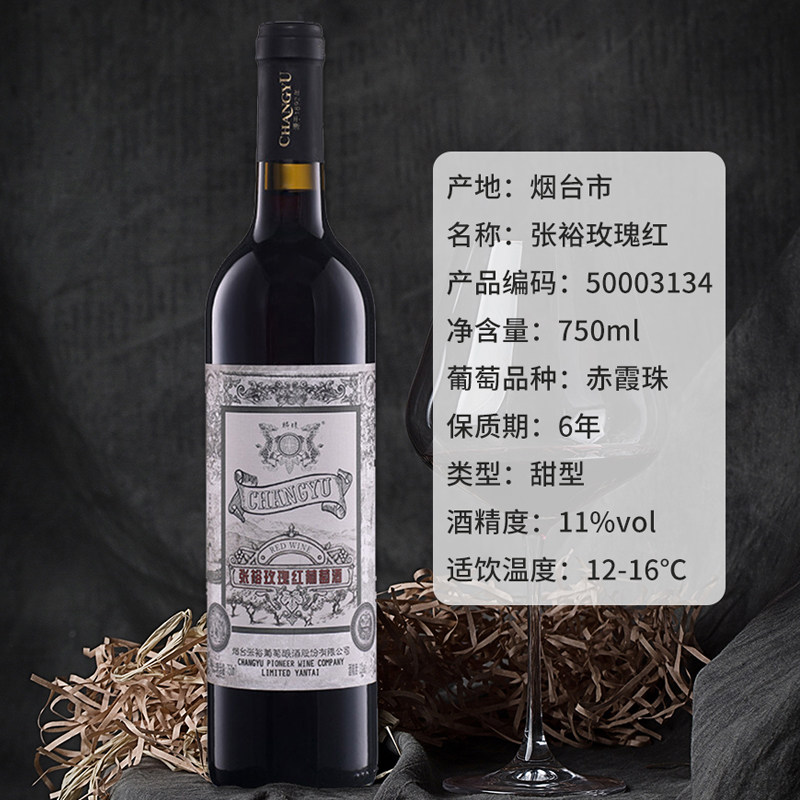张裕玫瑰红甜红葡萄酒赤霞珠甜红