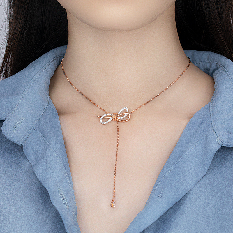 施华洛世奇玫瑰金色长款蝴蝶结项链女友生日礼物5447082