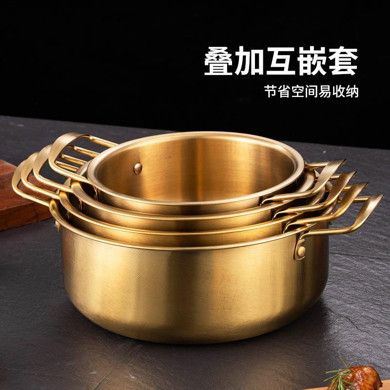 韩国泡面锅网红小铜锅小煮锅煮方便面小汤锅不锈钢双耳韩式拉面锅