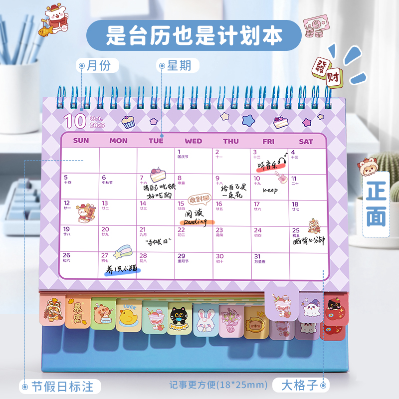 台历2026年新款日历摆件可爱卡通异形迷你学生文艺台历本26年可定制商务办公全年月历桌面创意打卡计划记事本