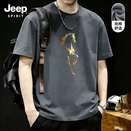 Jeep吉普马年纯棉短袖t恤男2026春季高级感套头重磅宽松百搭半袖