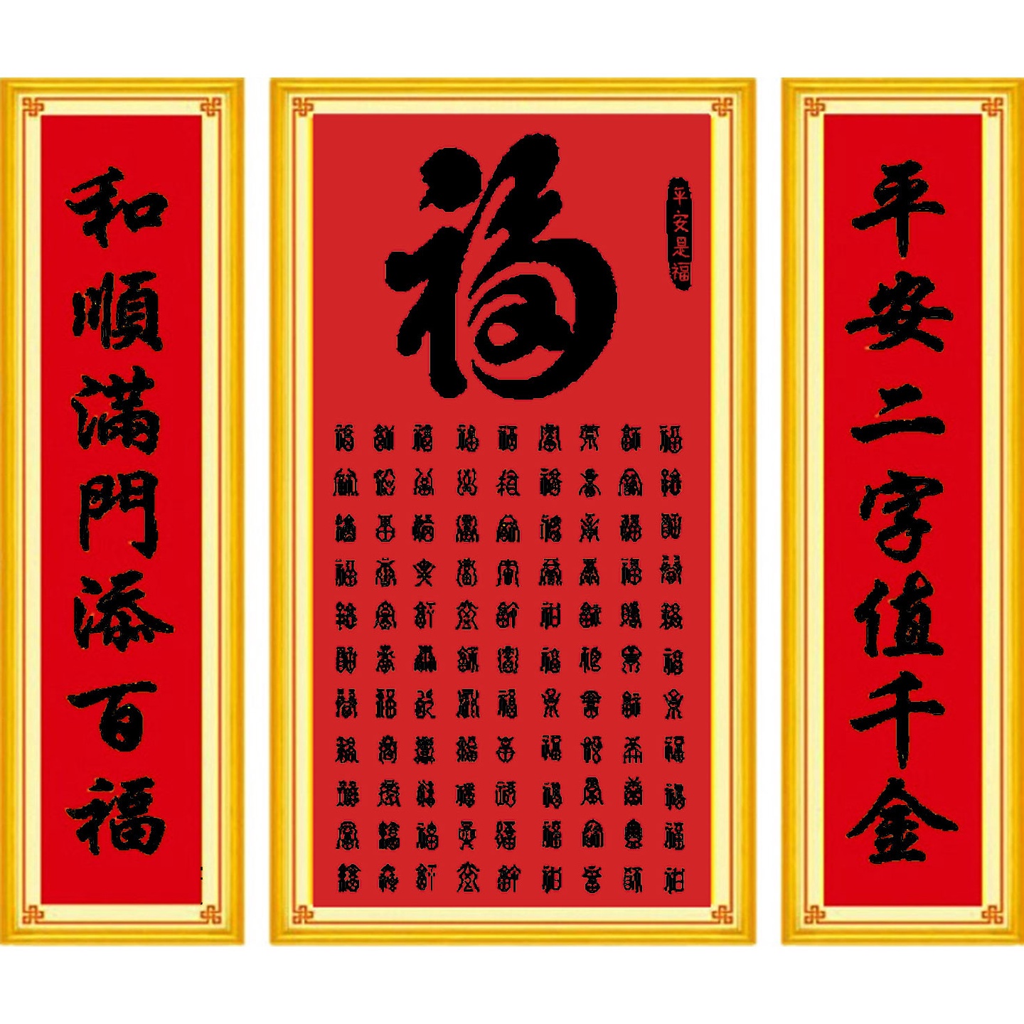 青飞精准百福中堂画十字绣平安是福福星高照十字绣福中堂对联珠绣