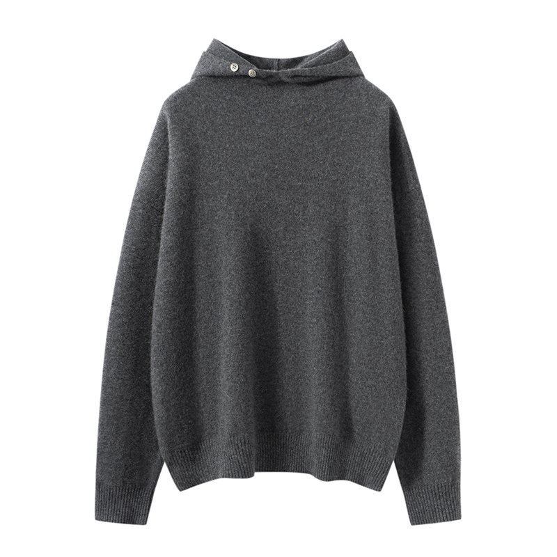 100%纯山羊绒衫2025秋冬新品连帽宽松休闲纯色针织衫简约百搭毛衣