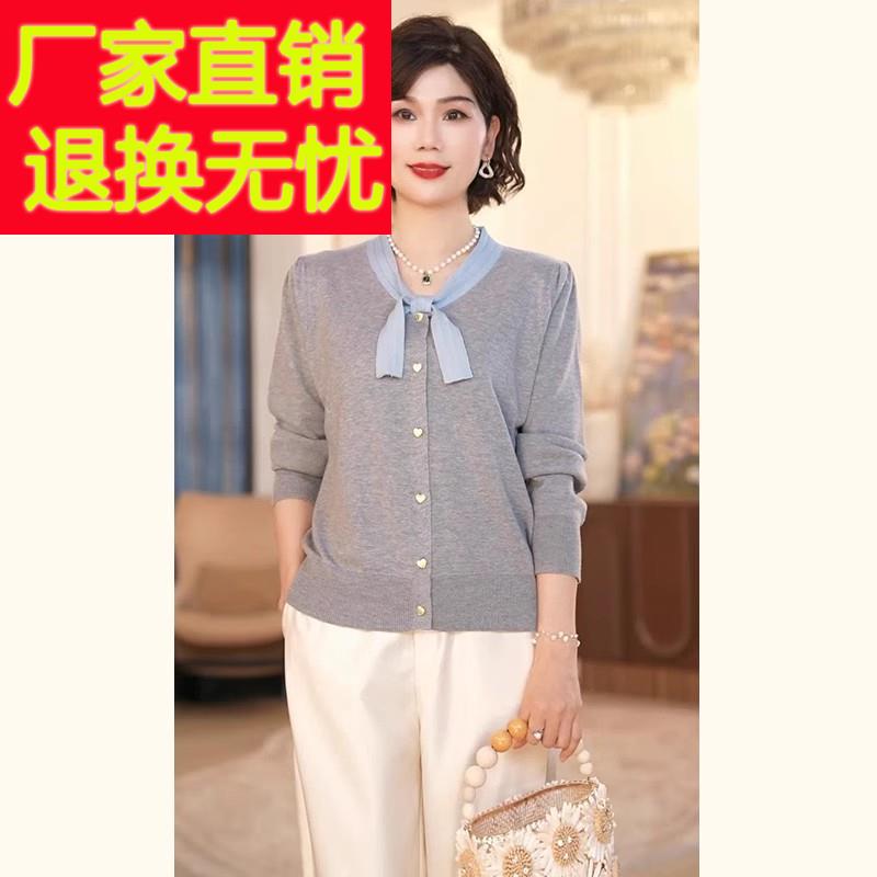 2025新款中年妈妈春装小开衫洋气毛衣中老年女装春秋针织衫上衣