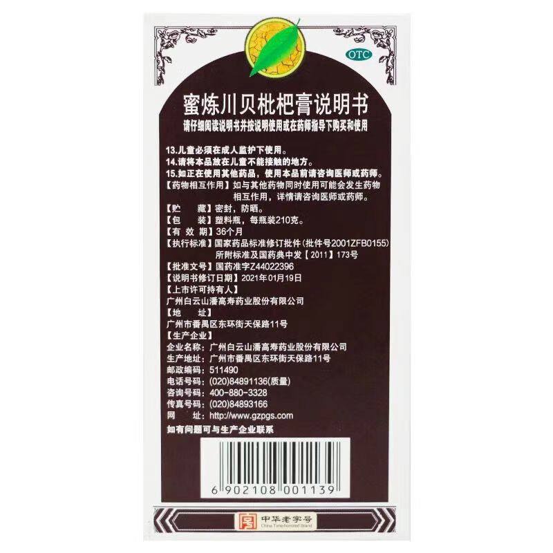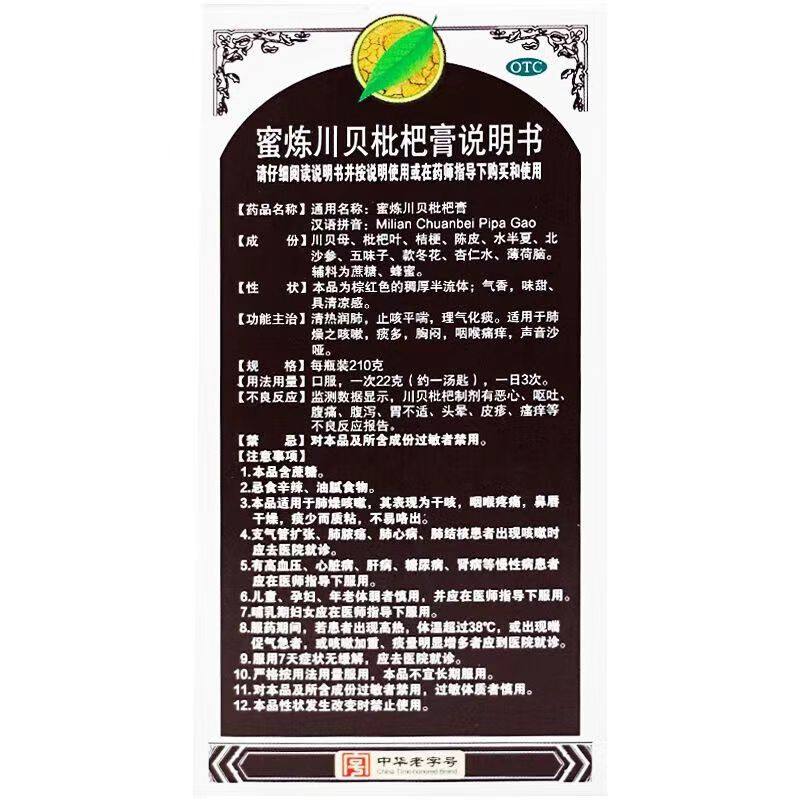 白云山蜜炼川贝枇杷膏210克 清热润肺止咳平喘
