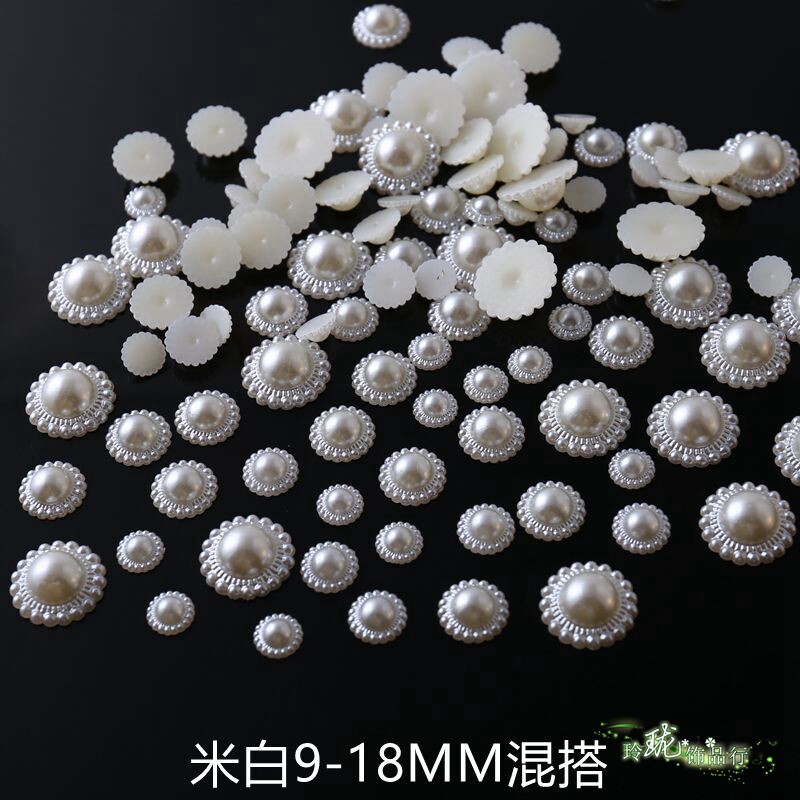 仿珍珠平底半圆abs太阳花贴片diy手工饰品发饰发夹服饰配件材料包