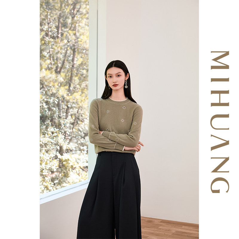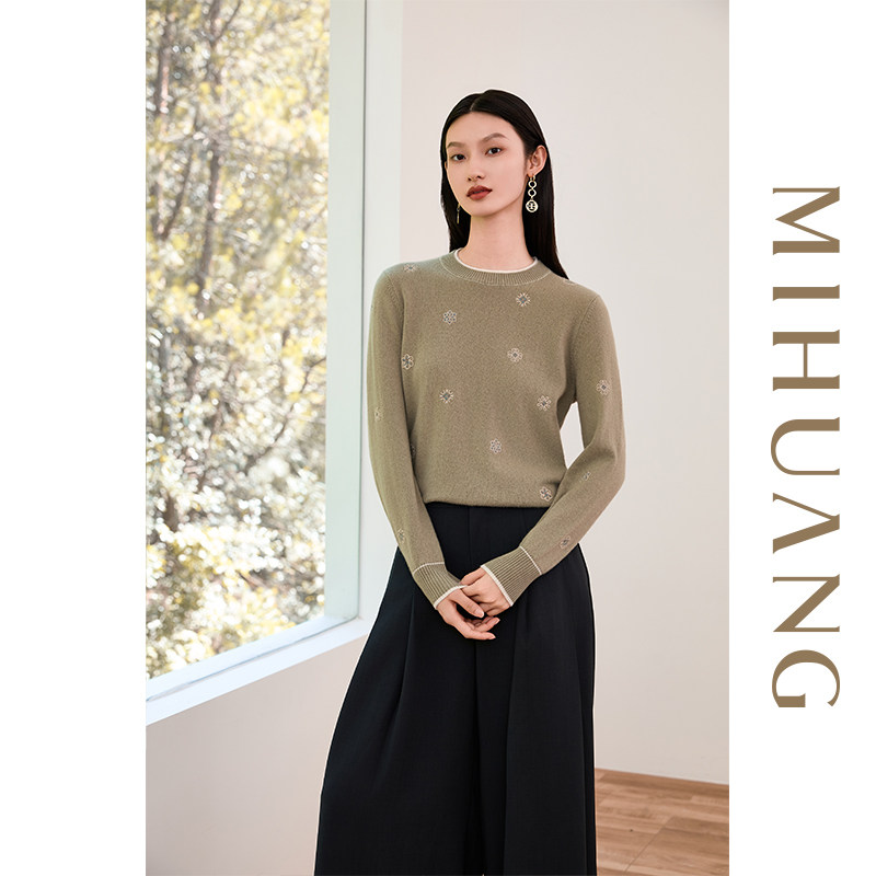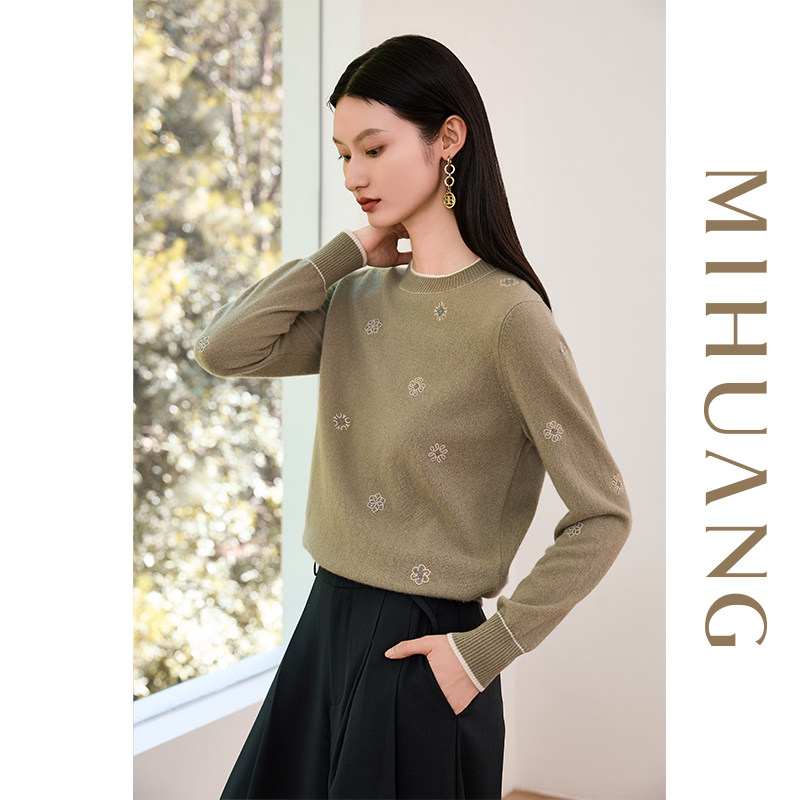 [商场同款]米皇2025秋冬新品圆领绣花羊绒女衫时尚绣花纯羊绒毛衣