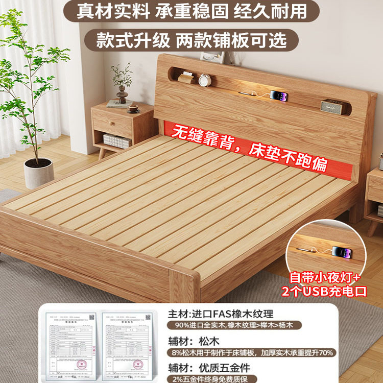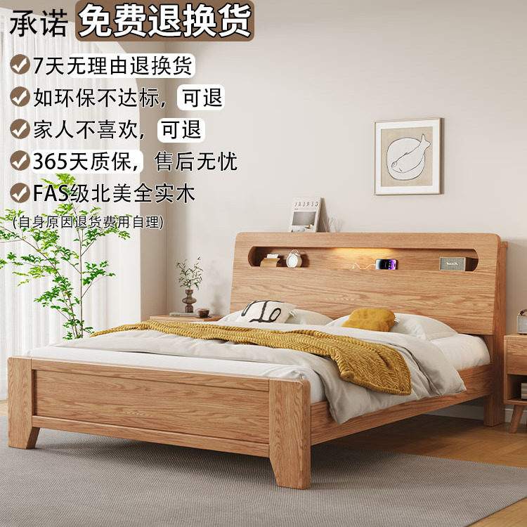 天坛家具全实木床简约现代家用1米8双人床卧室储物1.25米出租房用