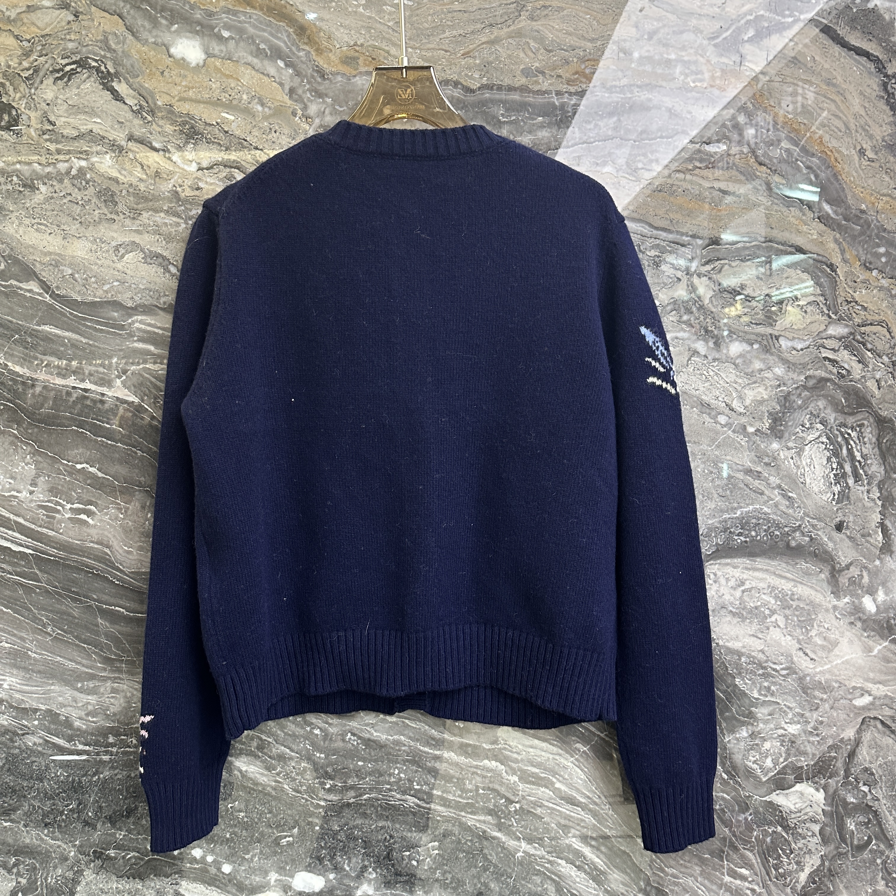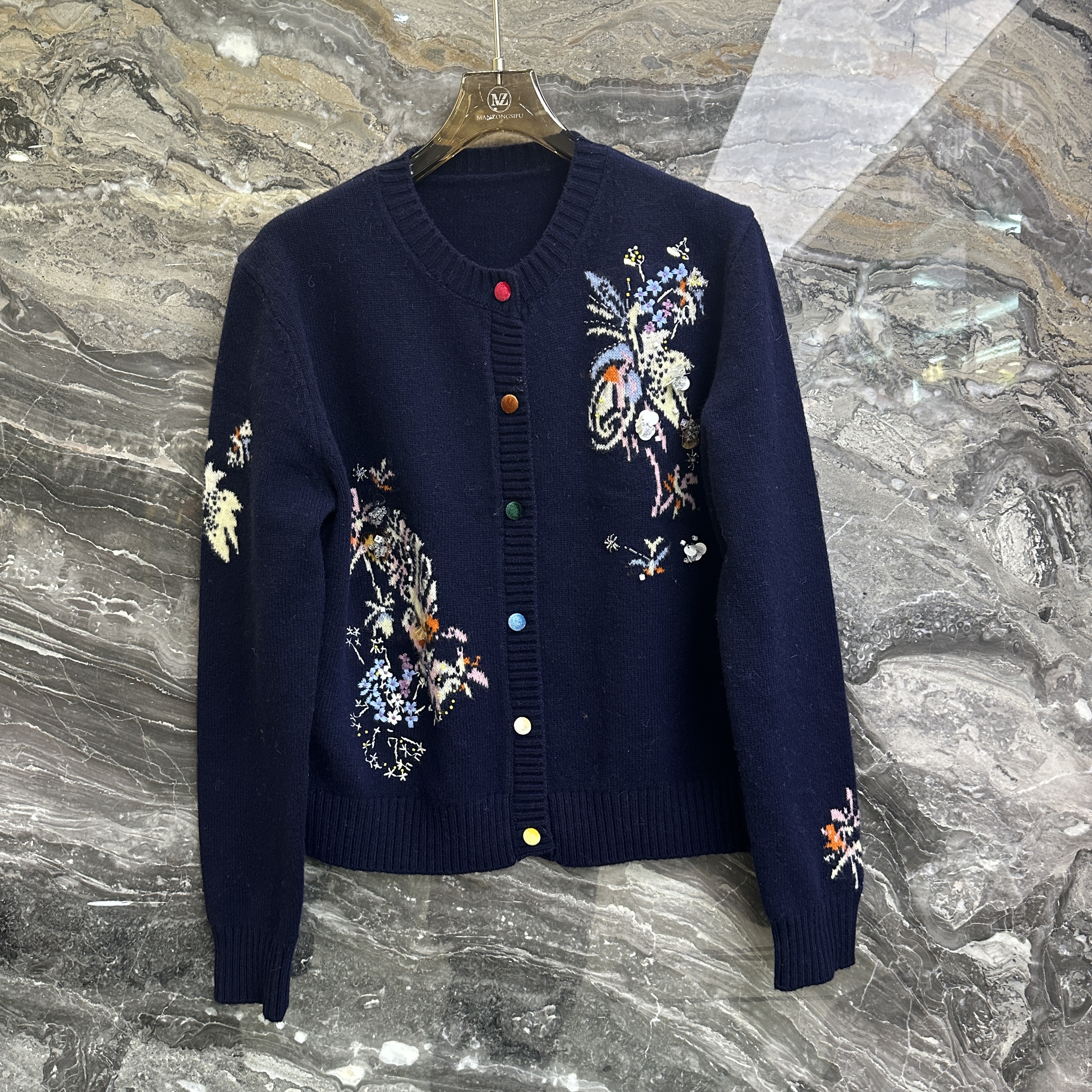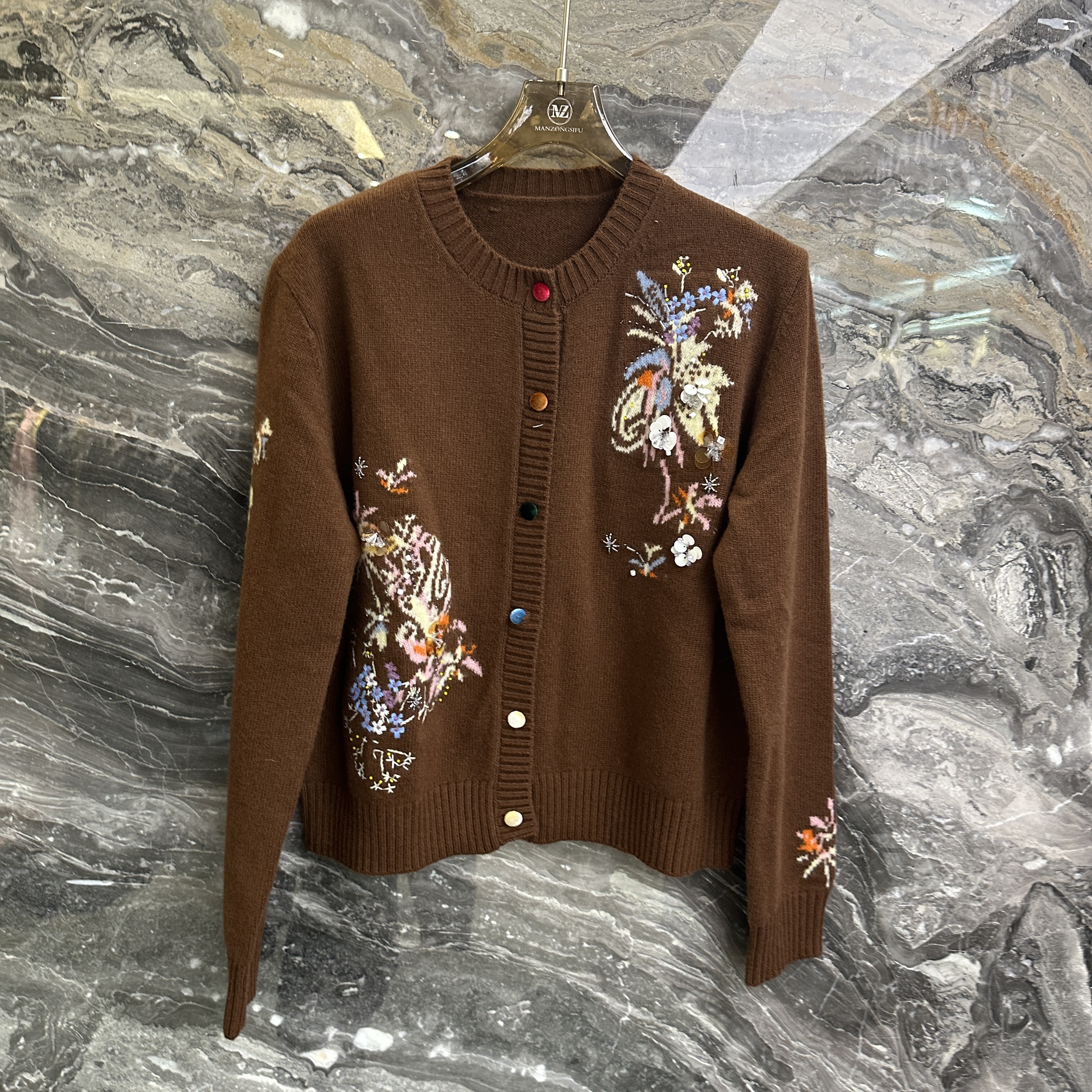 欧洲站2025秋季新款圆领单排扣花朵亮片钉珠刺绣软糯长袖针织开衫