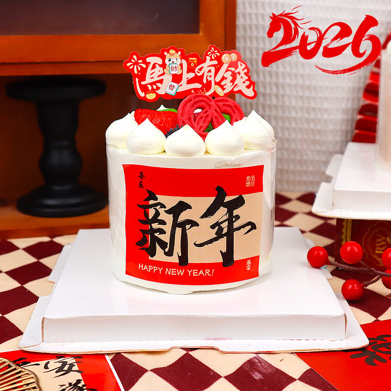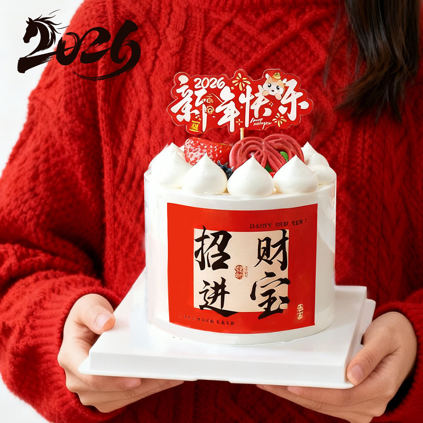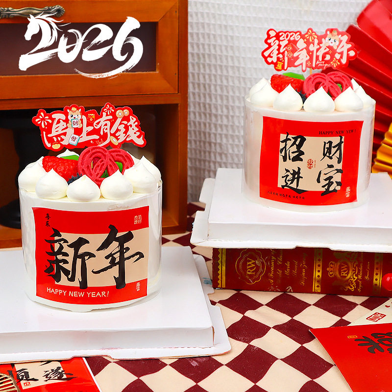 2026新年蛋糕装饰马上有钱插件新年贴纸烘焙元旦跨年甜品点缀围边