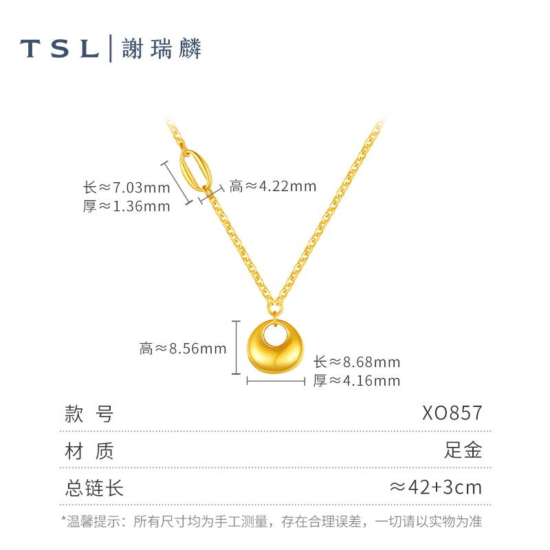 TSL谢瑞麟小胖福5G工艺黄金项链足金挂坠锁骨链XO857