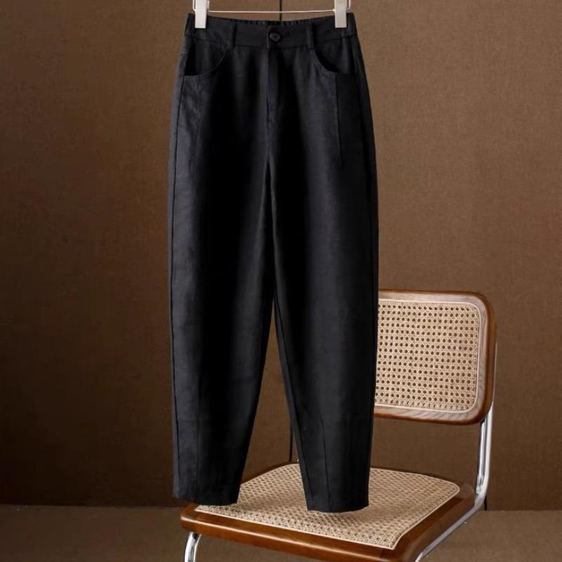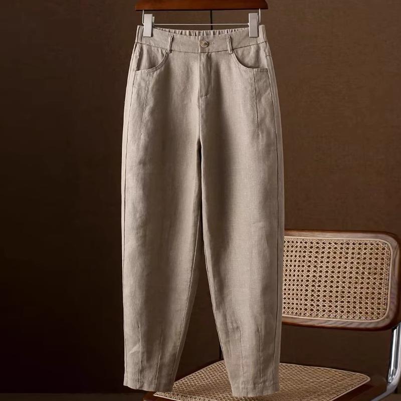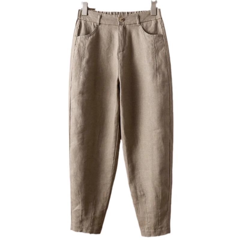 亚麻九分休闲裤女2024夏季新款宽松大码高端棉麻薄款小脚哈伦裤子