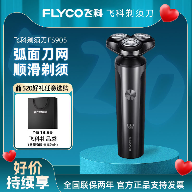 飞科电动剃须刀便携充电式男士刮胡刀可水洗旋转式刀头送老公礼物