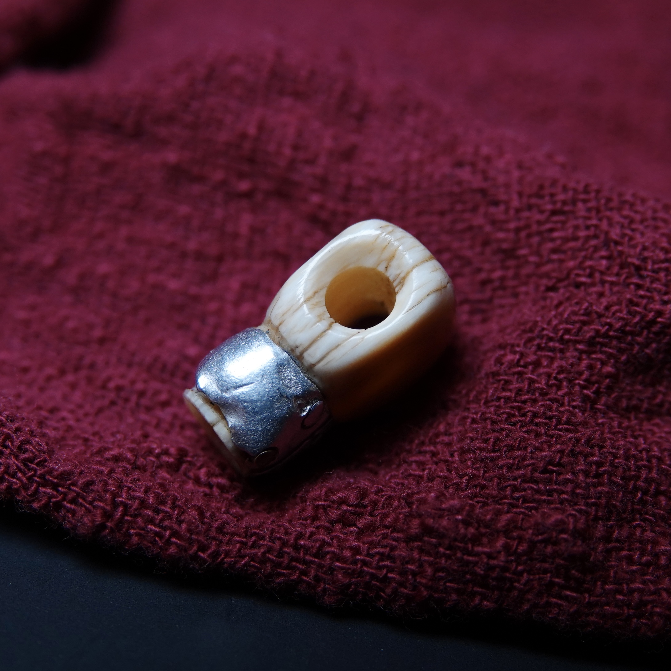 牧区原生态猛犸牙老高白咒点三通佛头大孔道文玩DIY佛珠束尾百搭