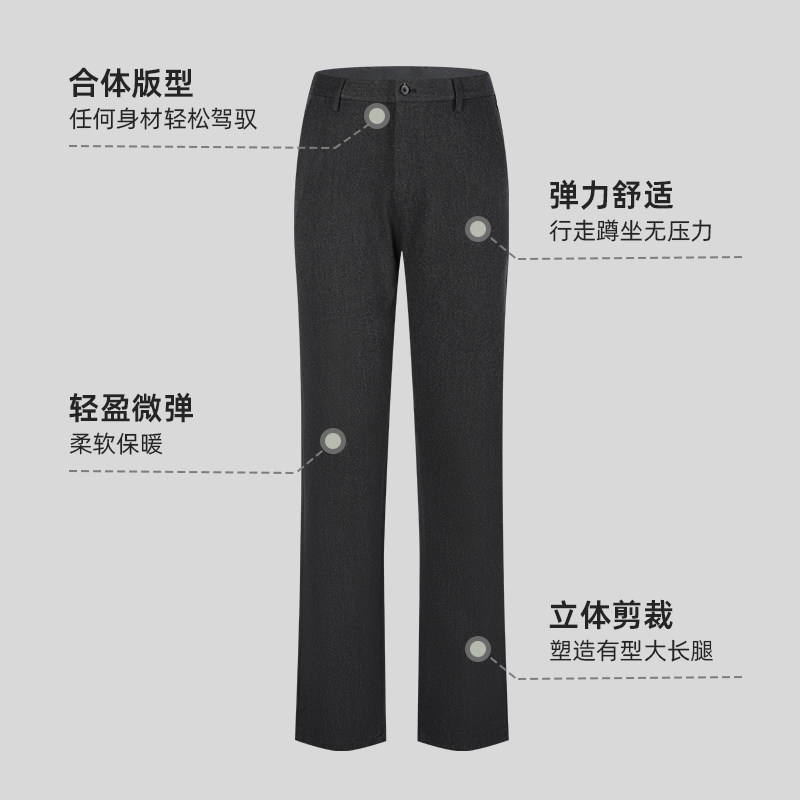 乔治白秋冬男士厚款休闲裤黑色中腰直筒微弹下装长裤