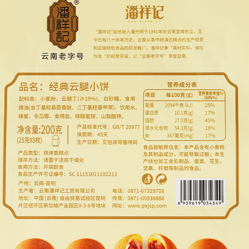 潘祥记酥皮月饼滇式云腿小饼早餐糕点心零食小吃云南传统特产