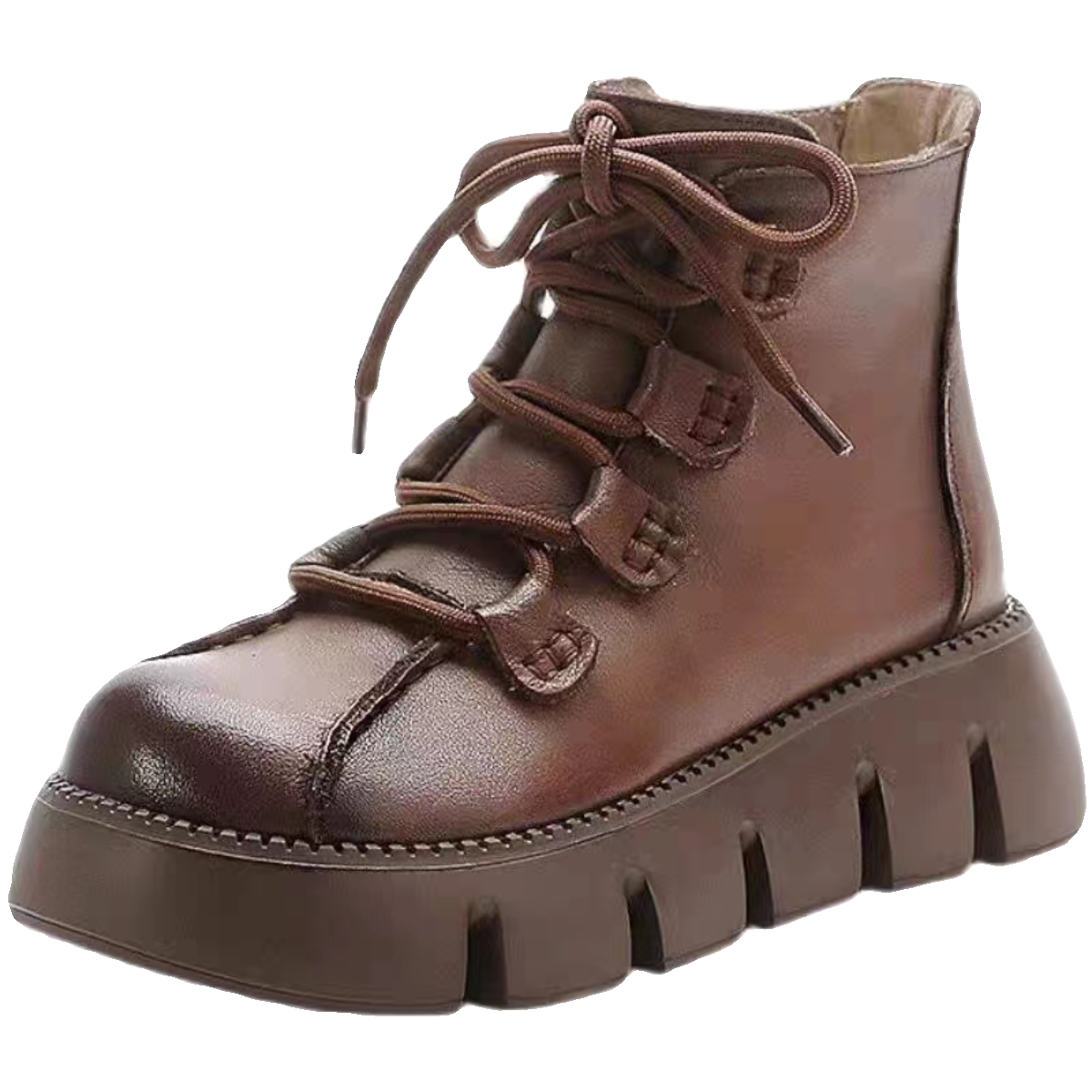 真皮厚底马丁靴女2025新款春秋百搭显瘦单靴松糕底英伦风平底短靴