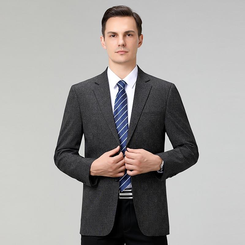 新款休闲西服男上单2301件春秋务爸爸衣装纯色中老年羊西装外套商