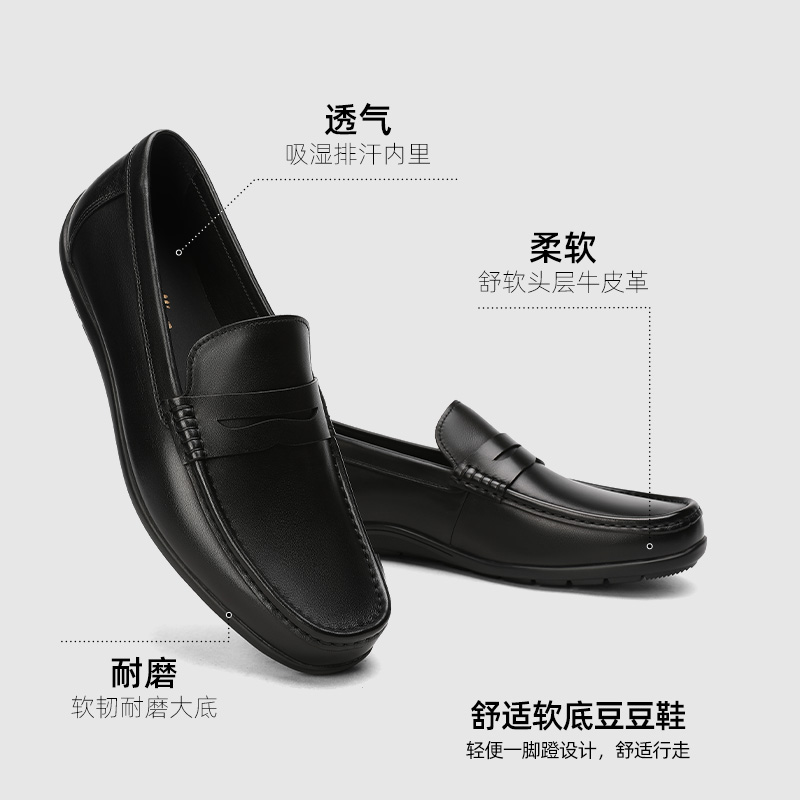 金利来男鞋官方正品秋季新款透气真皮鞋男士软底商务一脚蹬豆豆鞋