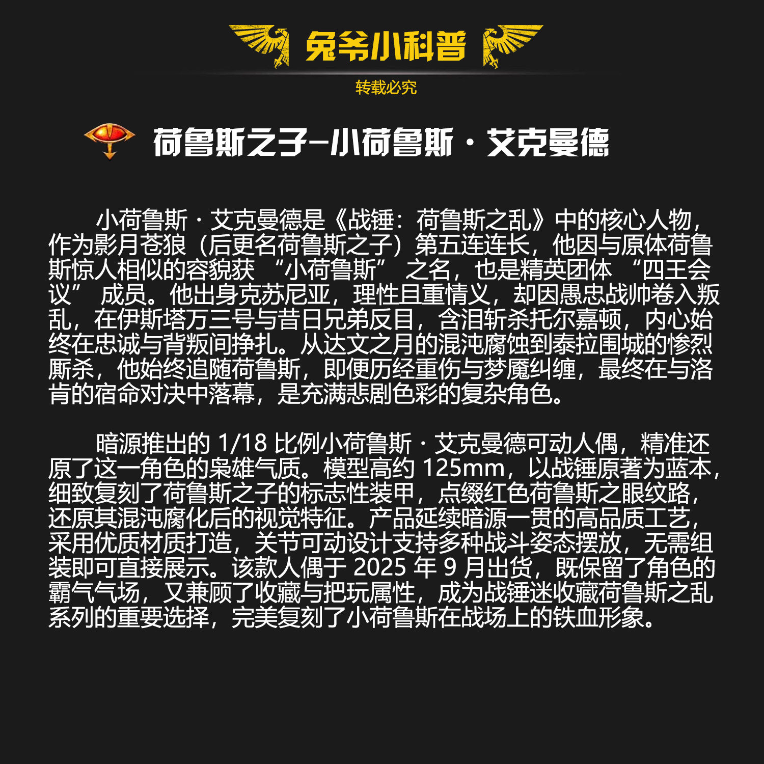暗源战锤 小荷鲁斯艾克曼德 超可动人偶暗源机甲战棋模型玩具手办