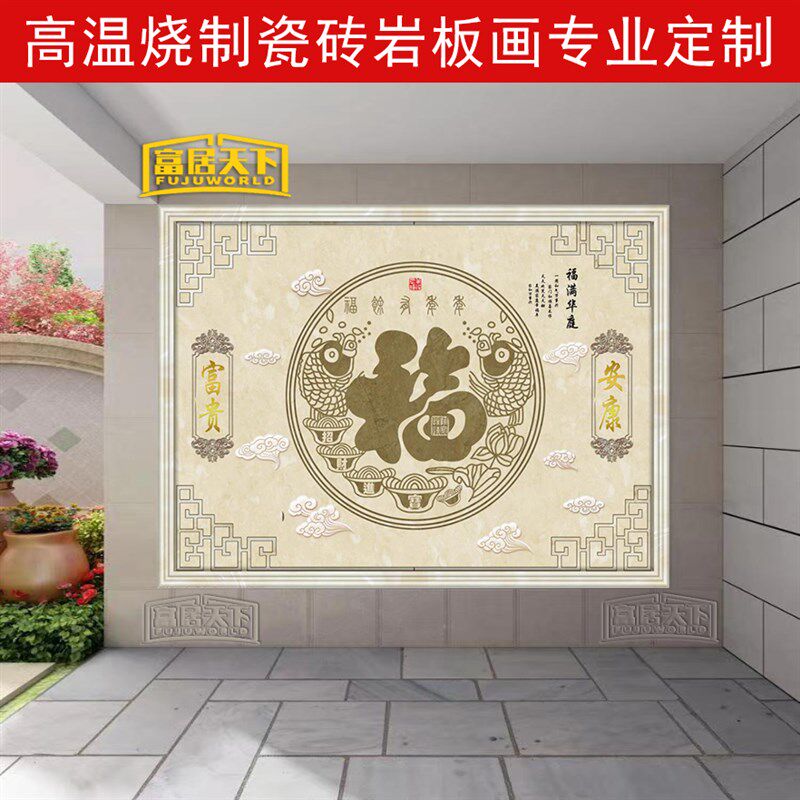 定制农村庭院影壁墙画瓷砖背景墙迎宾墙迎门墙大福字图案尺寸定制