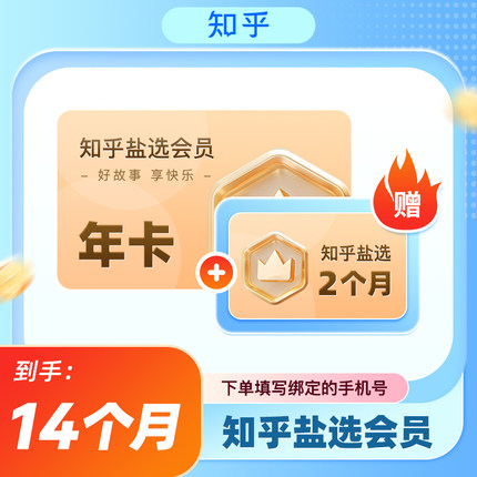 【送两个月】知乎盐选会员年卡知乎12个月加赠2个月官方直充