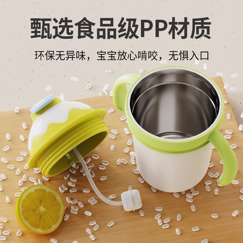 儿童吸管水杯保温牛奶杯316不锈钢刻度防摔宝宝喝汤水米糊杯牛奶1
