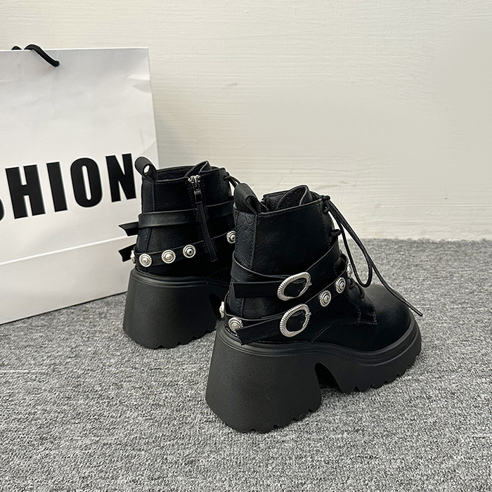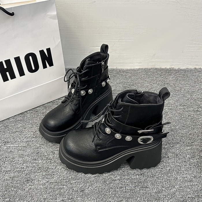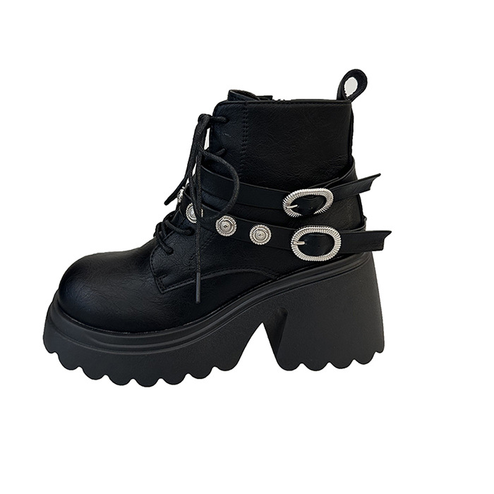 日本品质大码系带马丁靴女厚底机车短靴子2025秋冬新款机车百搭粗